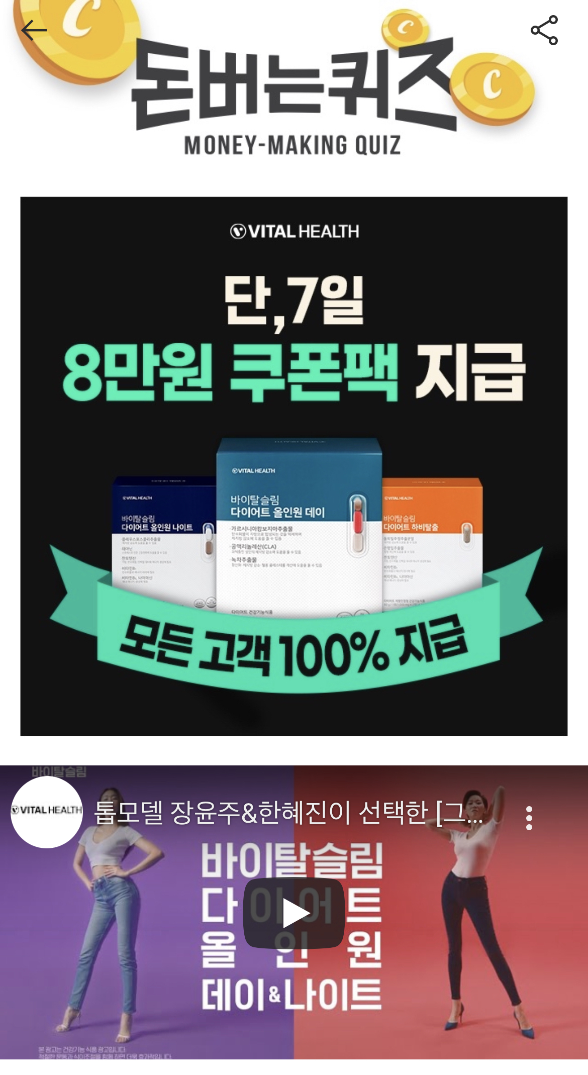 캐시워크 돈버는 퀴즈 정답 바이탈슬림 다이어트 단어