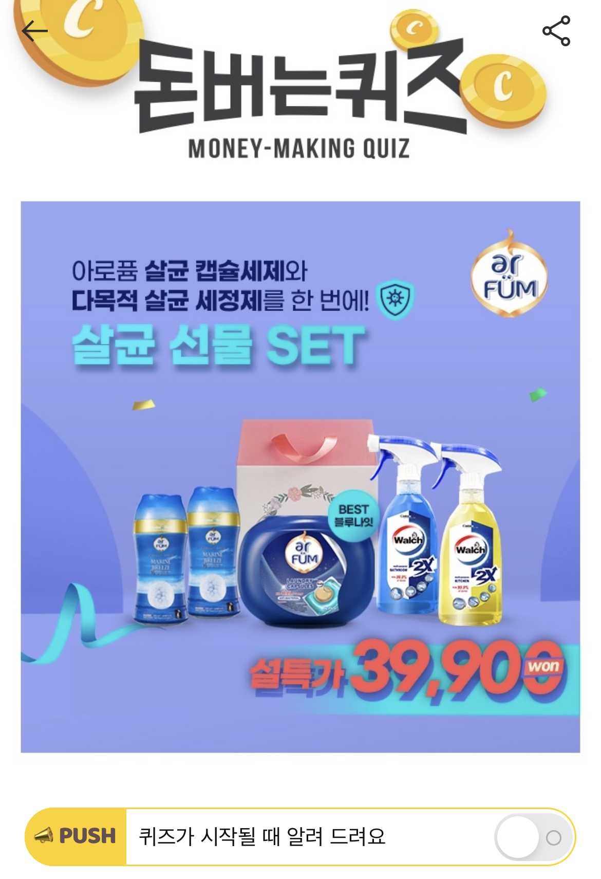 캐시워크 돈버는 퀴즈 정답 아로퓸 소취율 OO% 결과
