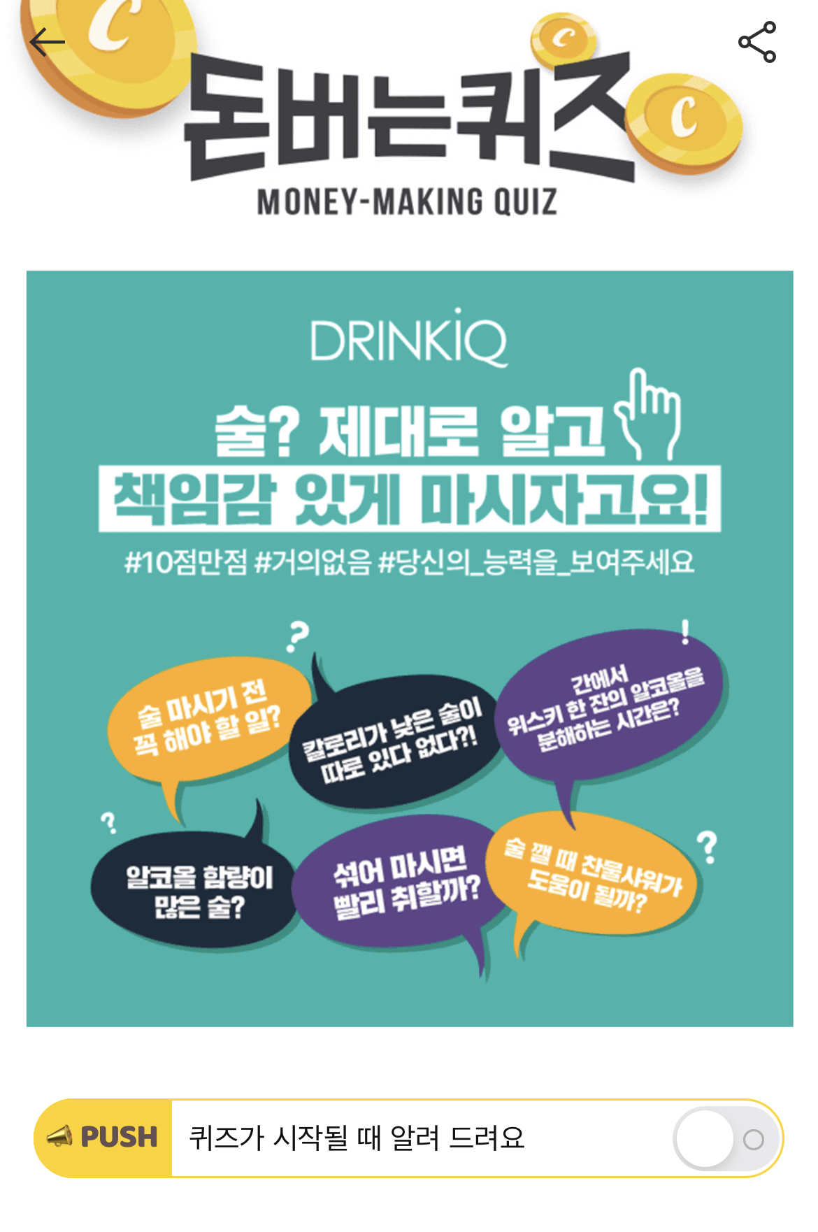 '글로벌 주류기업 디아지오에서 만든 OOOOO OO(영문) 퀴즈를 통해 여러분이 술에 대해 얼마나 잘 알고 계시는지 확인해 볼 수 있습니다. 빈칸에 들어갈 단어는 무엇일까요?
