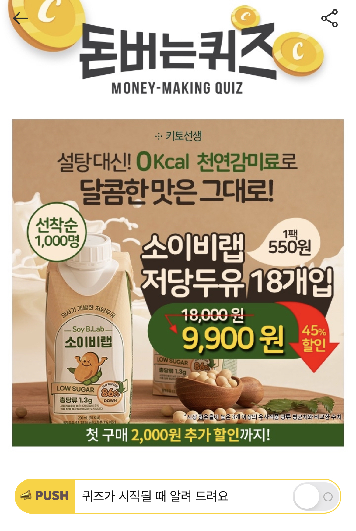 캐시워크 돈버는 퀴즈 정답 소이비랩 저당두유 후기 잎과 줄기 추출