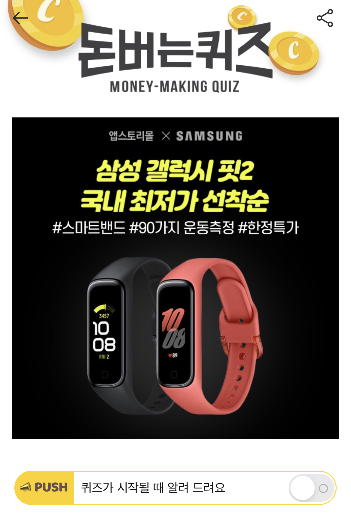 캐시워크 돈버는 퀴즈 정답 앱스토리몰 삼성 갤럭시 핏2 숫자