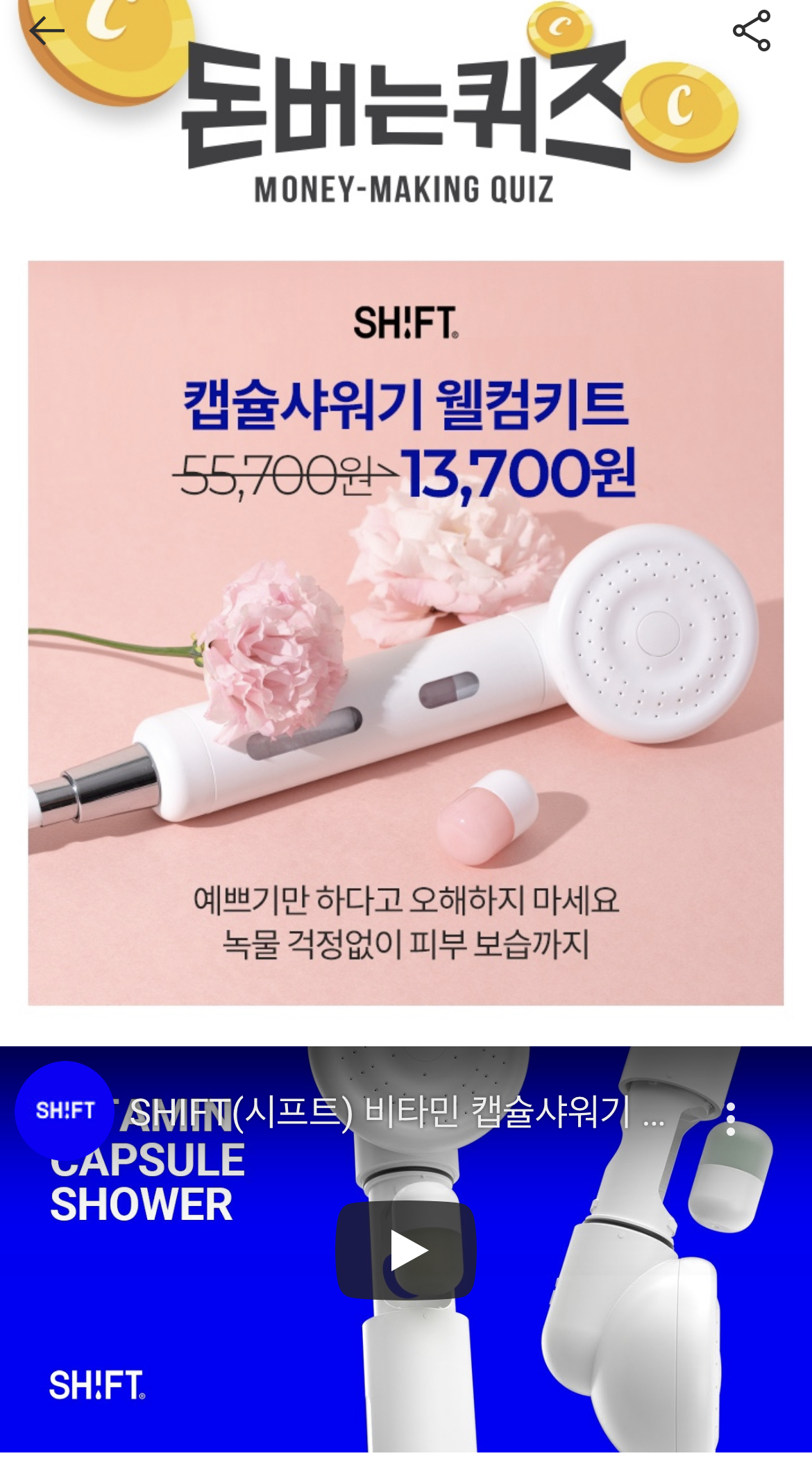 캐시워크 돈버는 퀴즈 정답 시프트 캡슐샤워기 ㅅㅂㄱ
