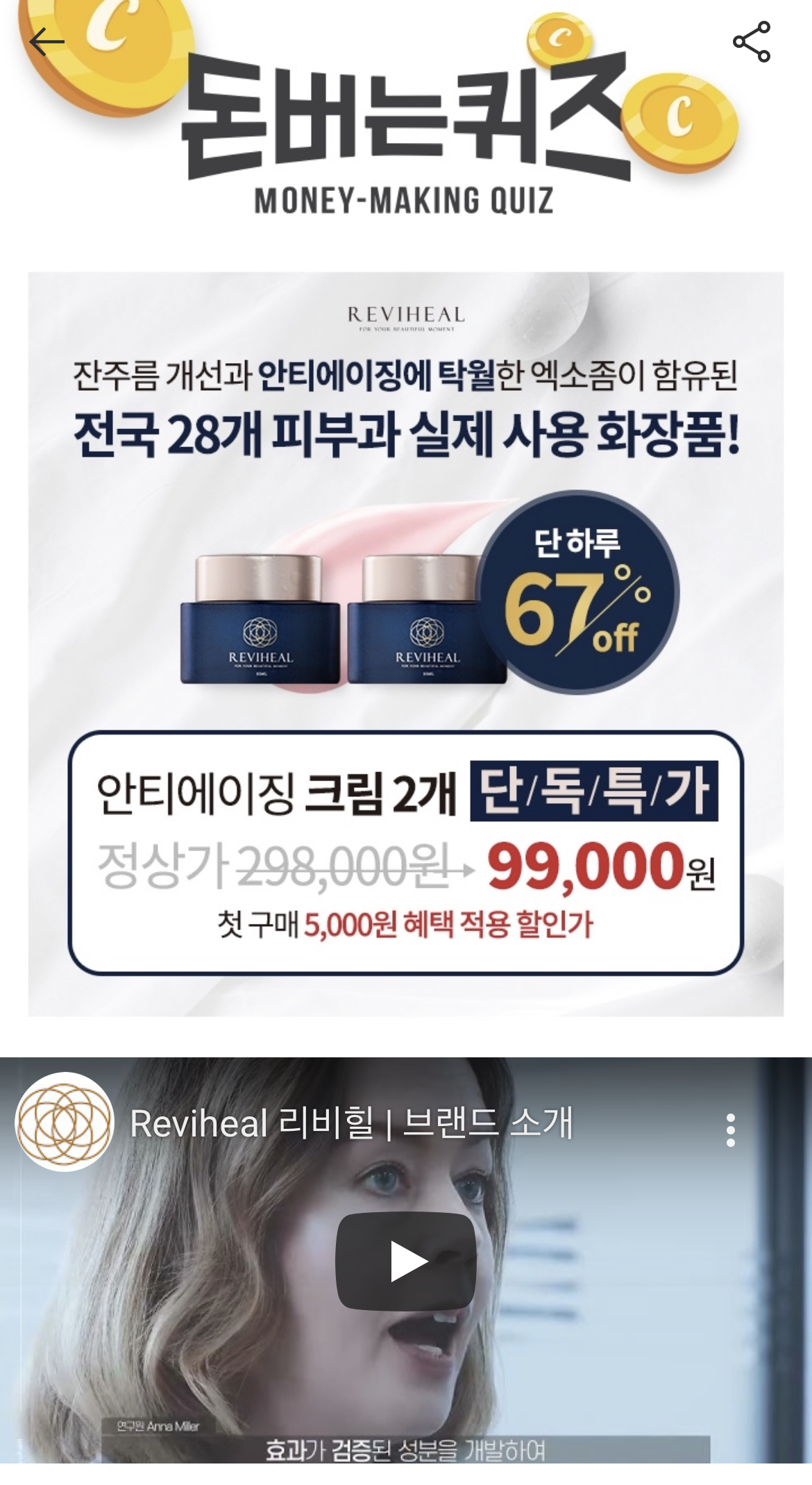 캐시워크 돈버는 퀴즈 정답 리비힐 스킨부스터 앰플&크림 ㅇㄷㅍ