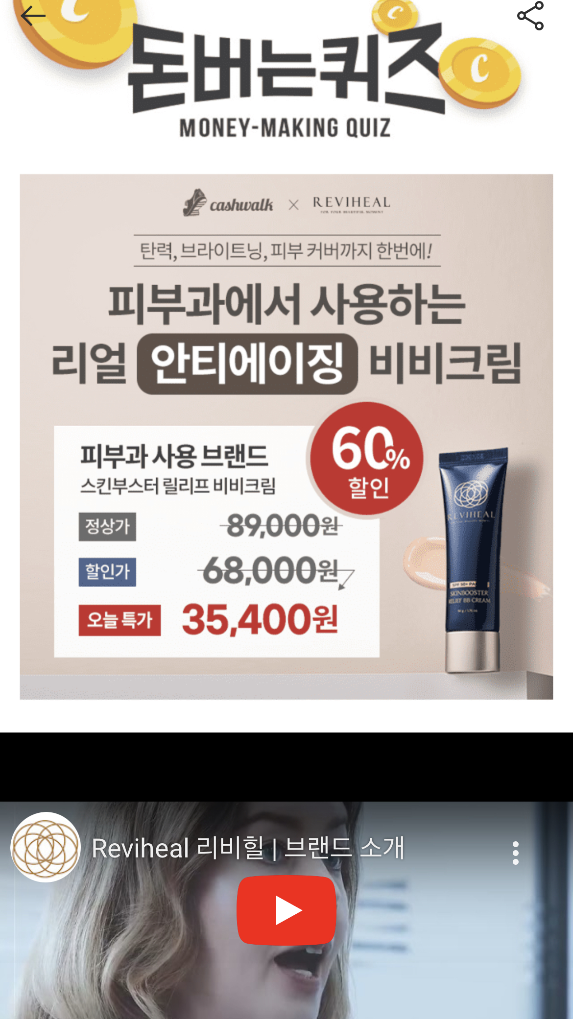 캐시워크 돈버는 퀴즈 정답 리비힐 스킨부스터 릴리프 비비크림 ㅁㄱㅈㅇㅅ