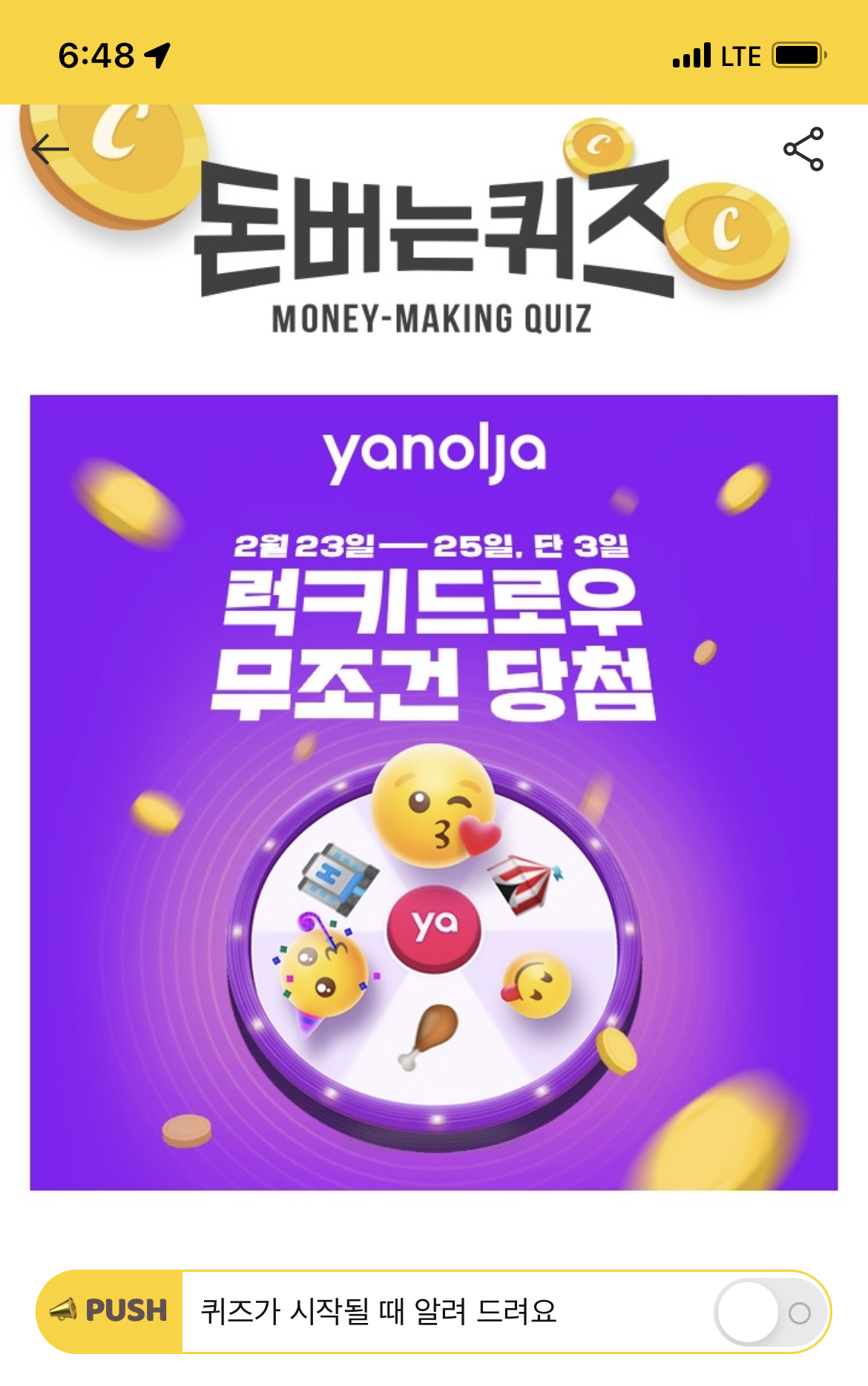 캐시워크 돈버는 퀴즈 정답 야놀자 럭키드로우 이벤트