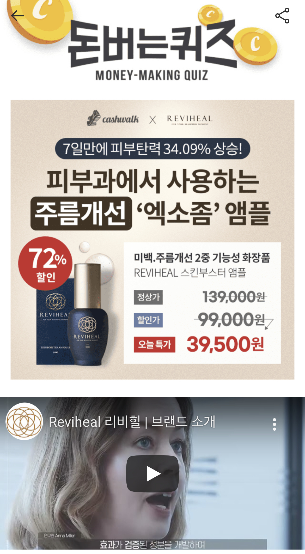캐시워크 돈버는 퀴즈 정답 리비힐 스킨부스터 앰플 단어