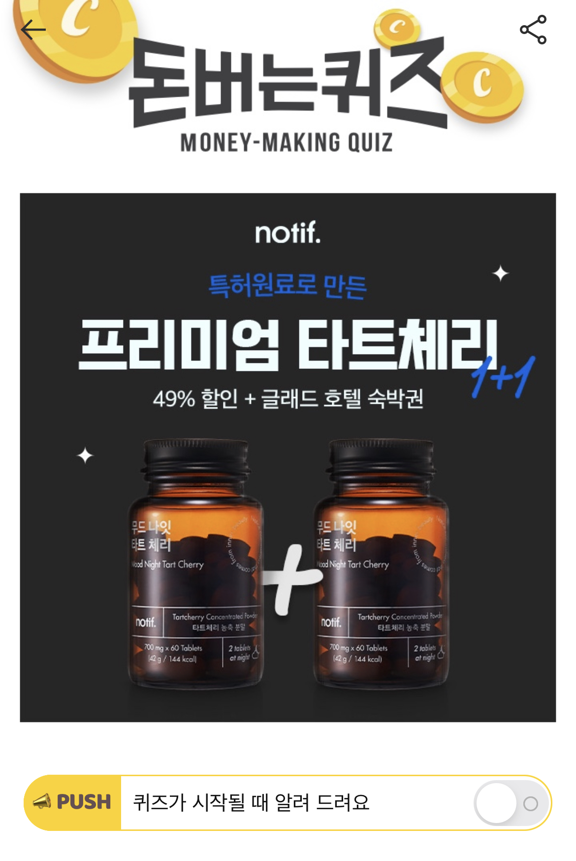 캐시워크 돈버는 퀴즈 정답 노티프 무드나잇 타트체리 들판의 나라