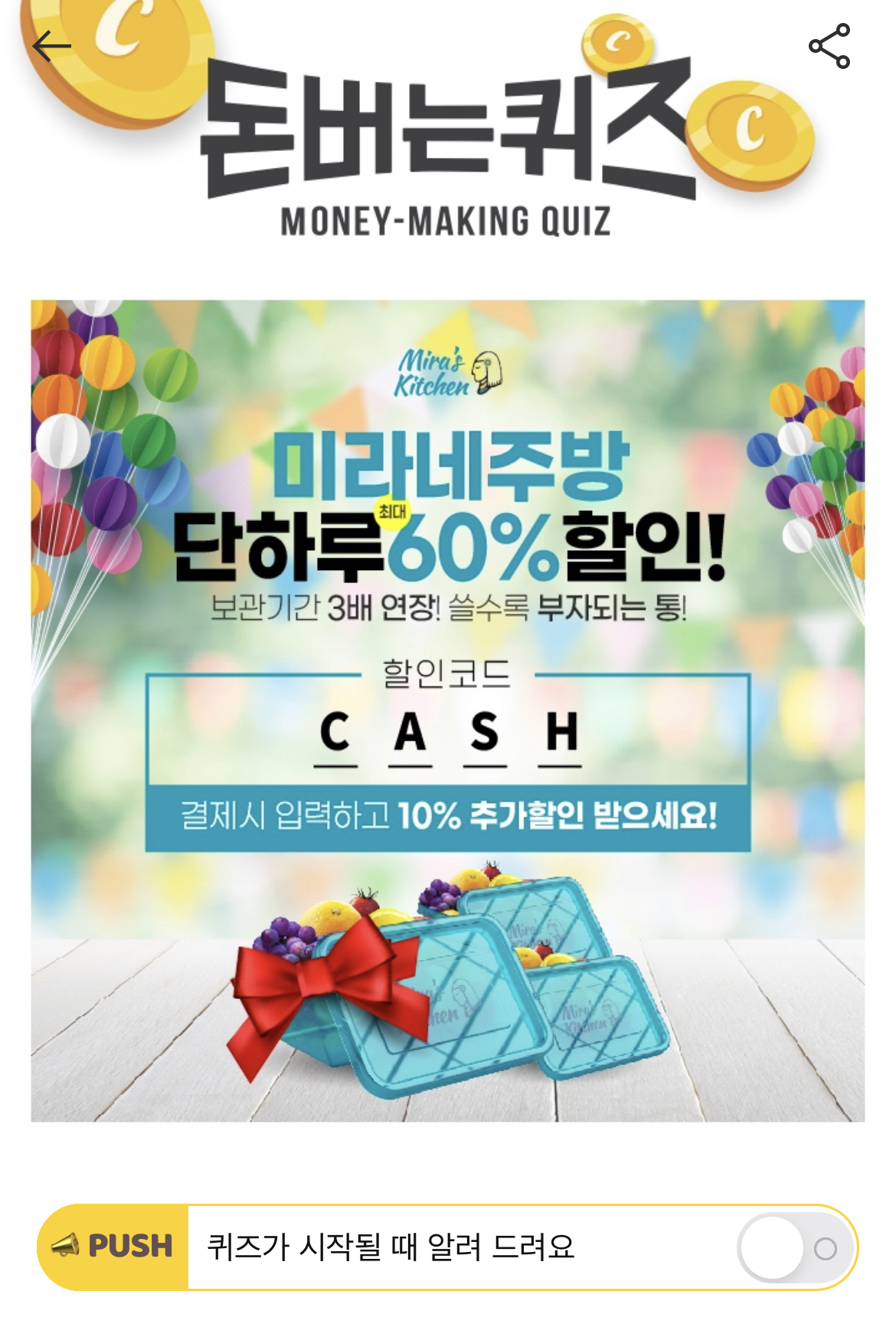 캐시워크 돈버는 퀴즈 정답 미라네주방 숫자