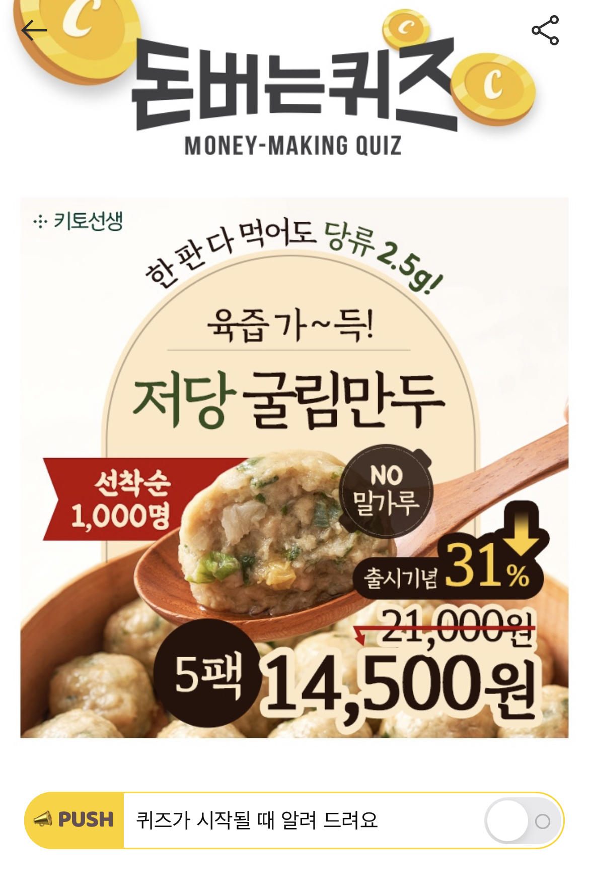 캐시워크 돈버는 퀴즈 정답 키토선생 저당굴림만두 후기