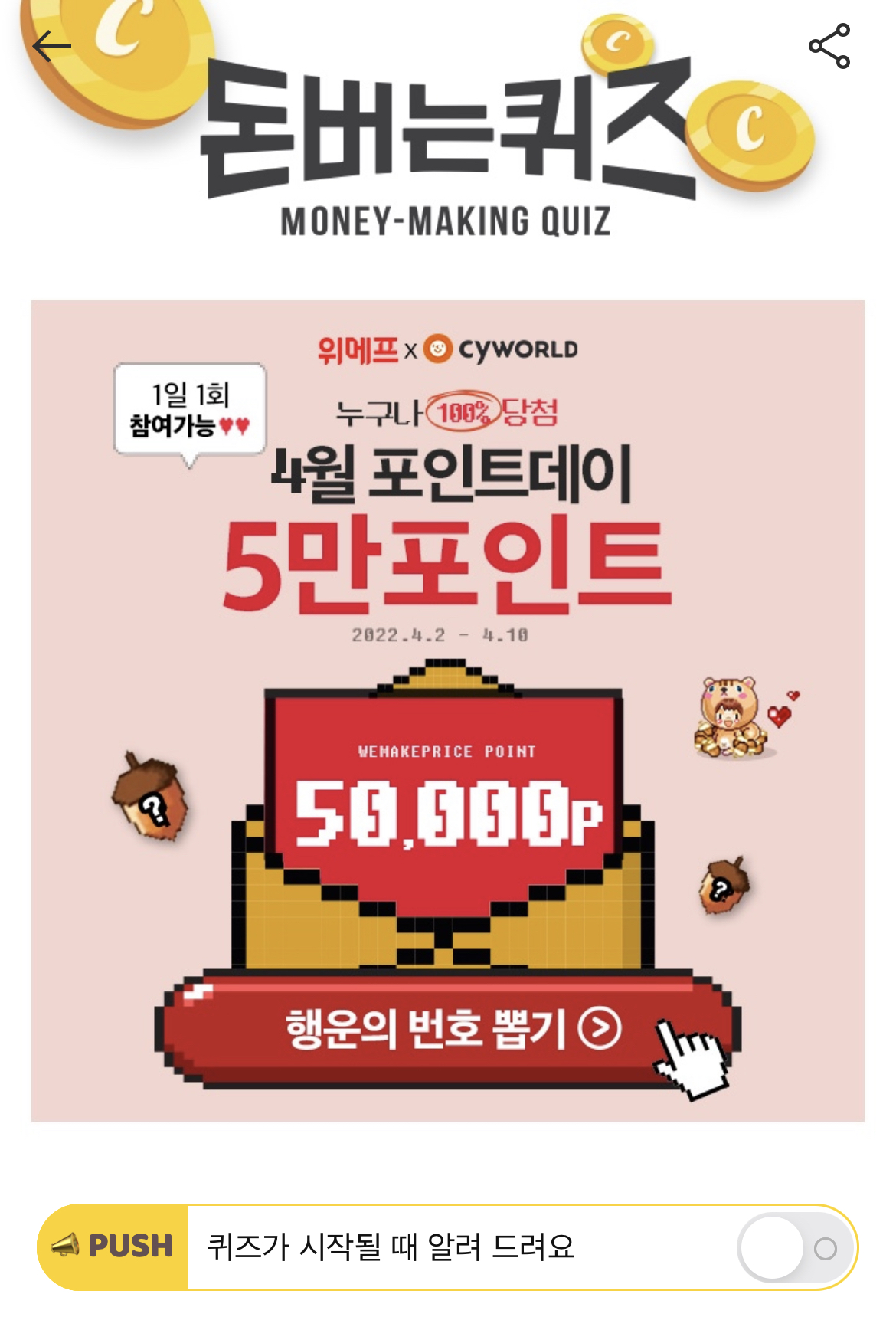 캐시워크 돈버는 퀴즈 정답 위메프 출석체크 이벤트 BONUS 포인트 숫자