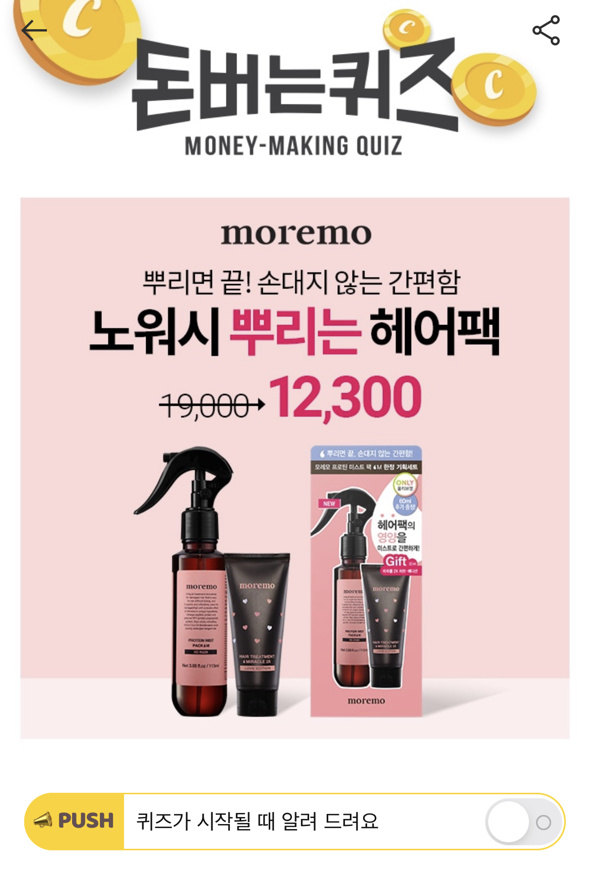 캐시워크 돈버는 퀴즈 정답 모레모 프로틴 미스트팩M ㅍㅌㅇㄷ
