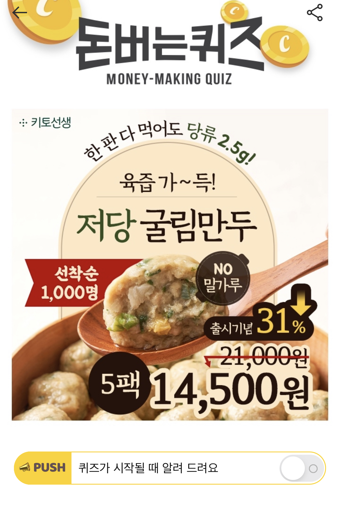 캐시워크 돈버는 퀴즈 정답 키토선생 저당굴림만두 후기
