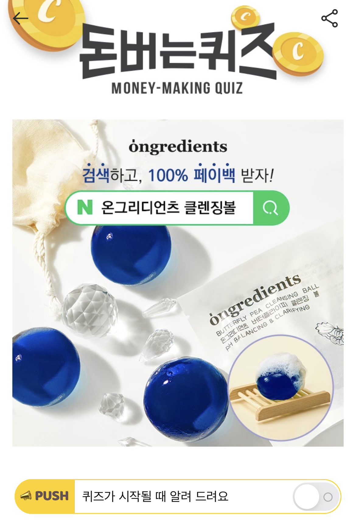 캐시워크 돈버는 퀴즈 정답 온그리디언츠 클렌징볼 에센스 클렌저