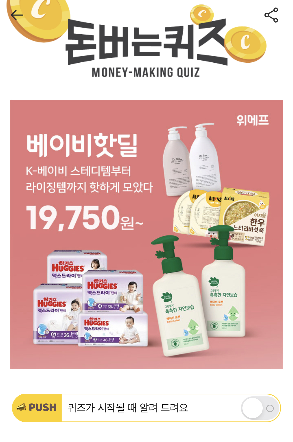 캐시워크 돈버는퀴즈 정답 위메프 베이비핫딜