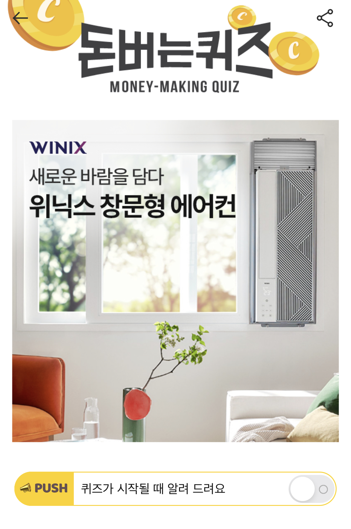 캐시워크 돈버는퀴즈 정답 위닉스 창문형에어컨