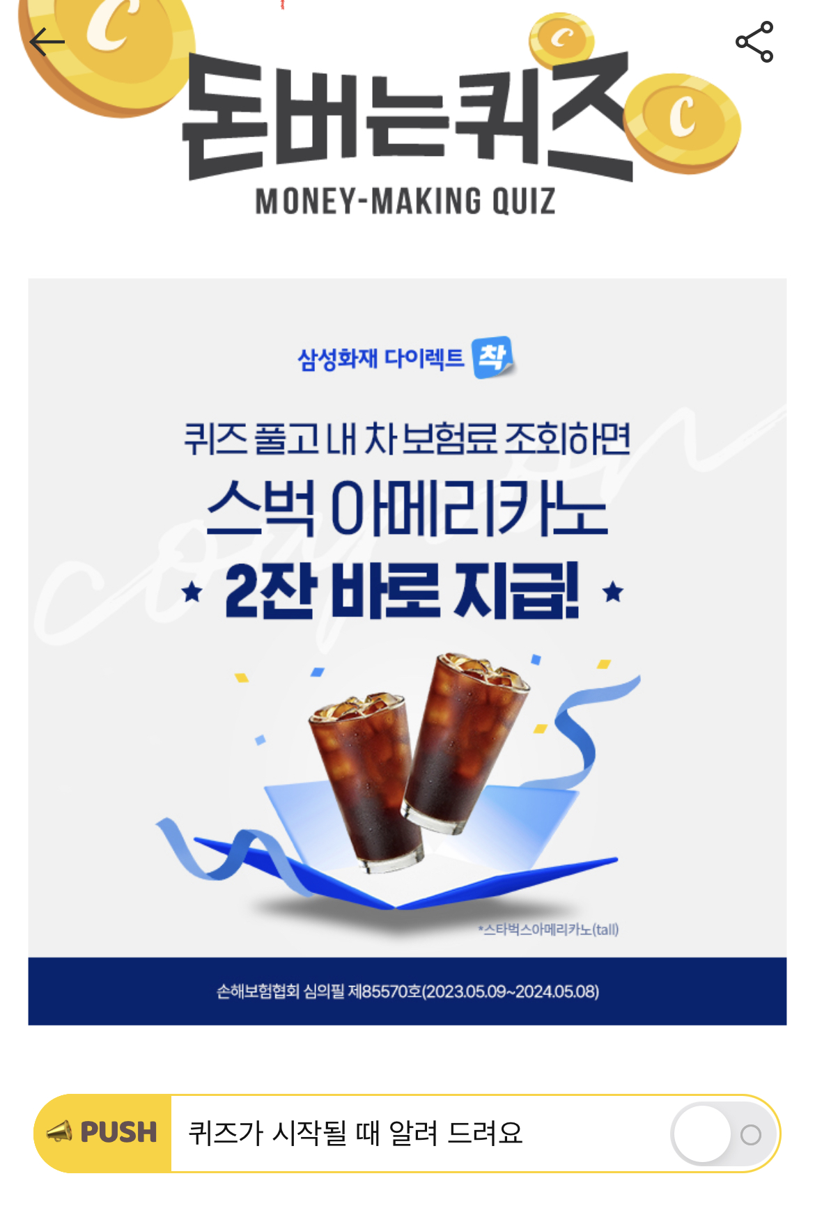 캐시워크 돈버는퀴즈 정답 삼성화재 자동차보험료