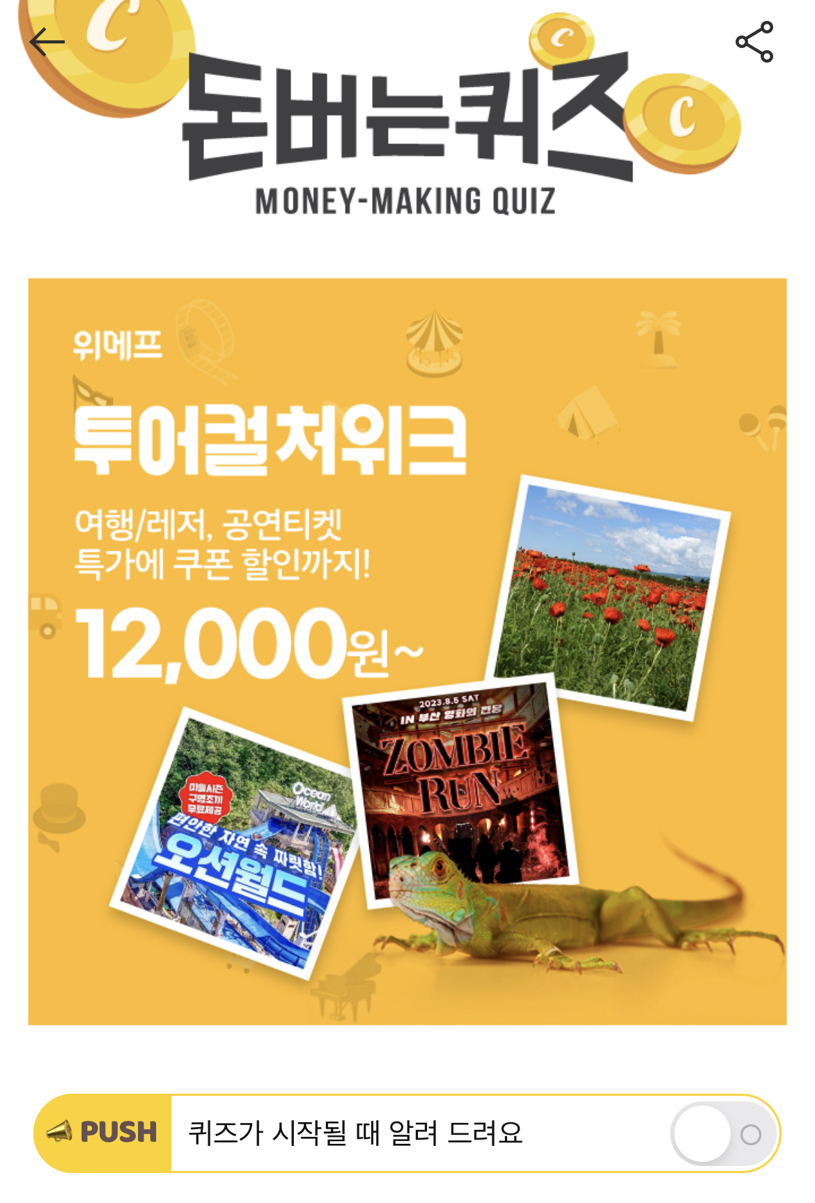 캐시워크 돈버는퀴즈 정답 위메프 투어컬처위크
