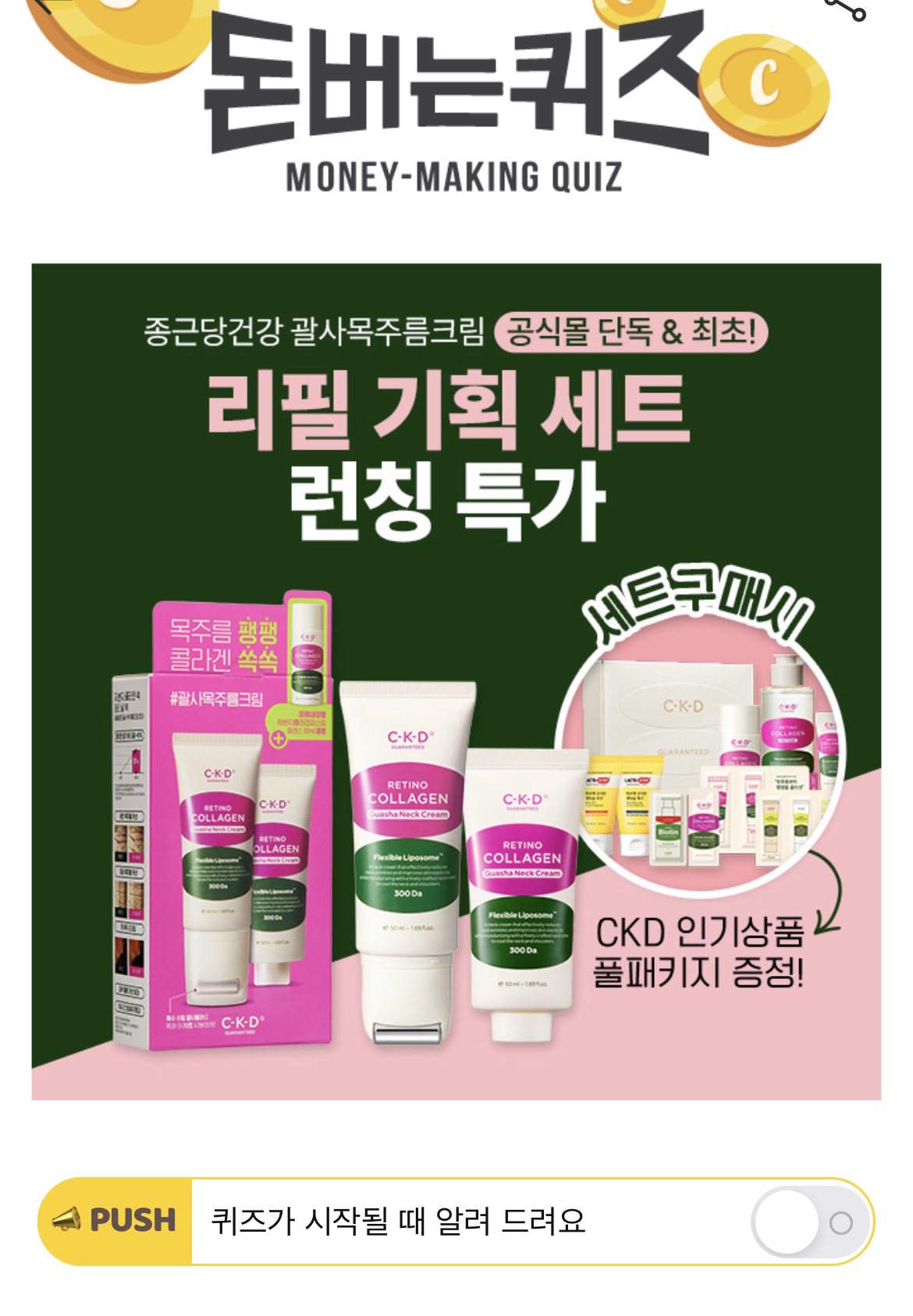 캐시워크 돈버는퀴즈 정답 종근당건강 1위 괄사목주름크림 리필세트