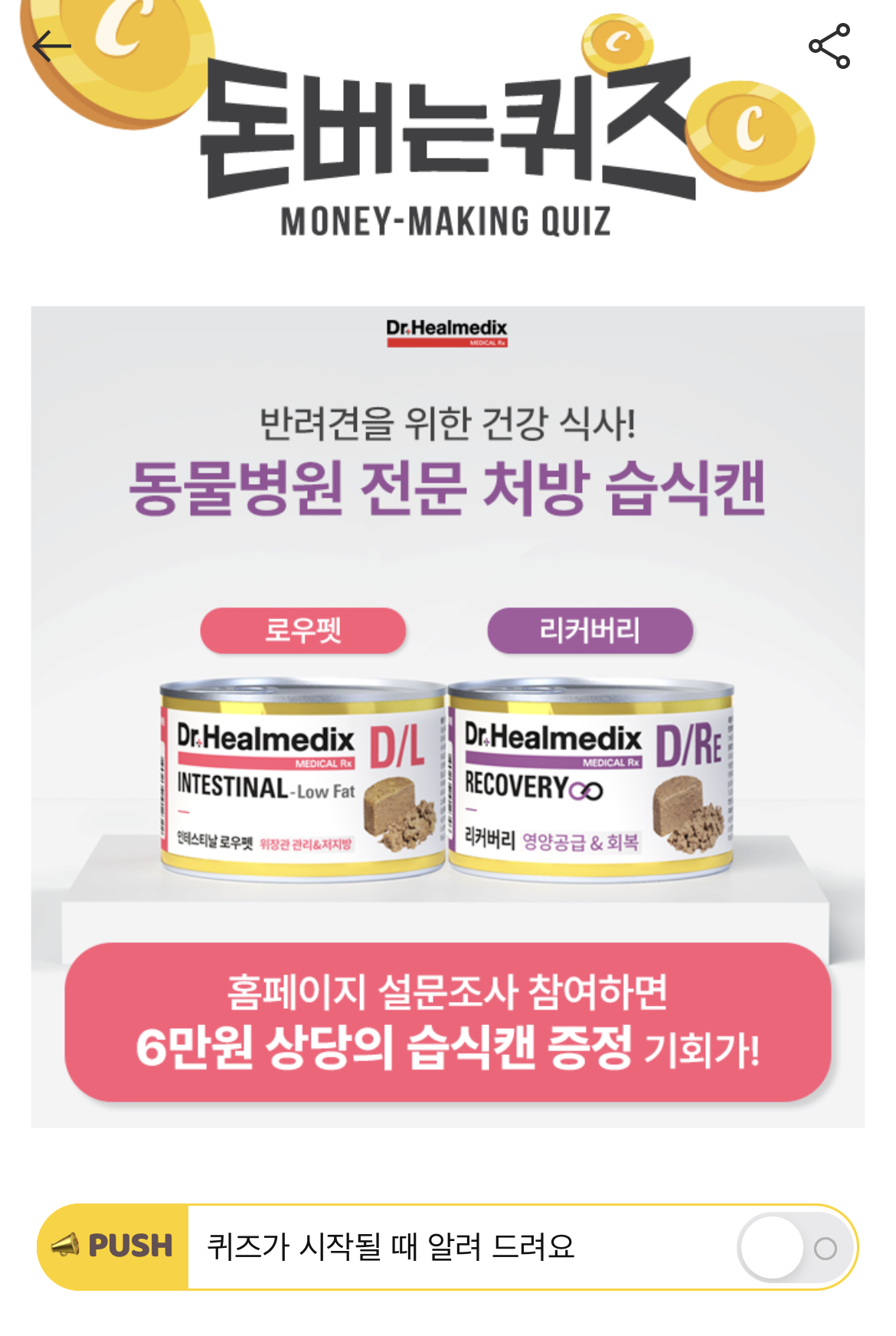 캐시워크 돈버는퀴즈 정답 닥터 힐메딕스 인테스티날 로우펫 처방 습식 캔