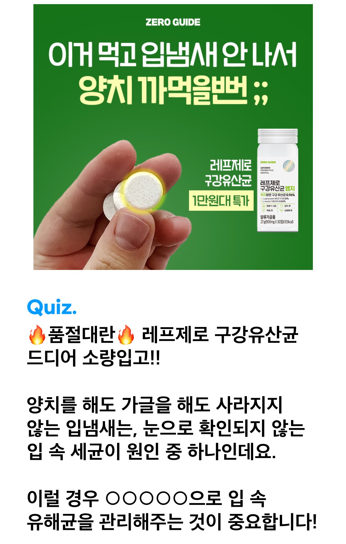 타임스프레드 용돈퀴즈 정답 레프제로 구강유산균