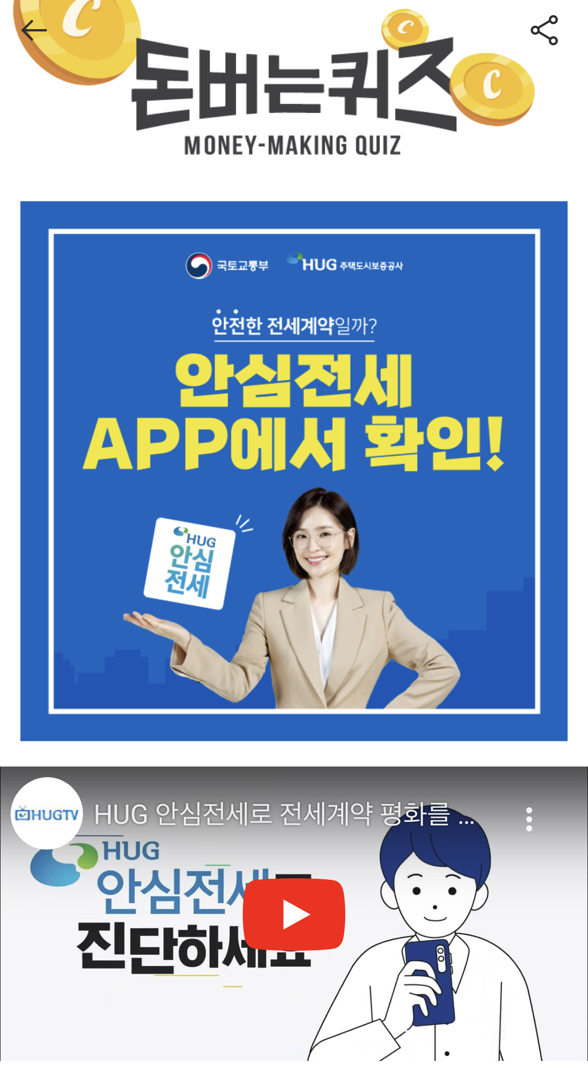 캐시워크 돈버는퀴즈 정답 HUG 안심전세 App ㅈㅅㅂㅈ