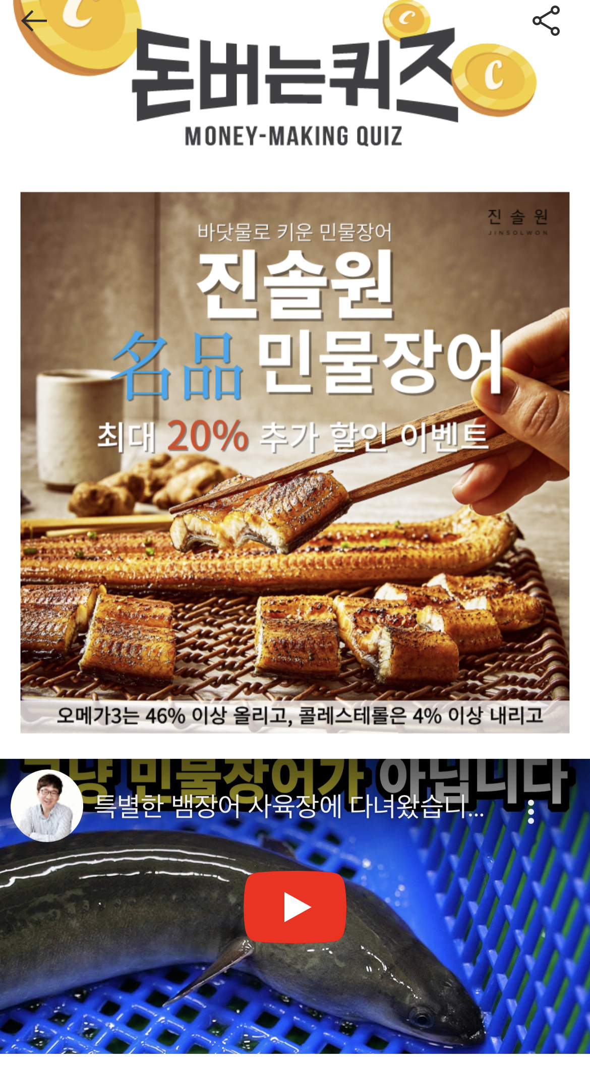 캐시워크 돈버는퀴즈 정답 진솔원 민물장어 단어