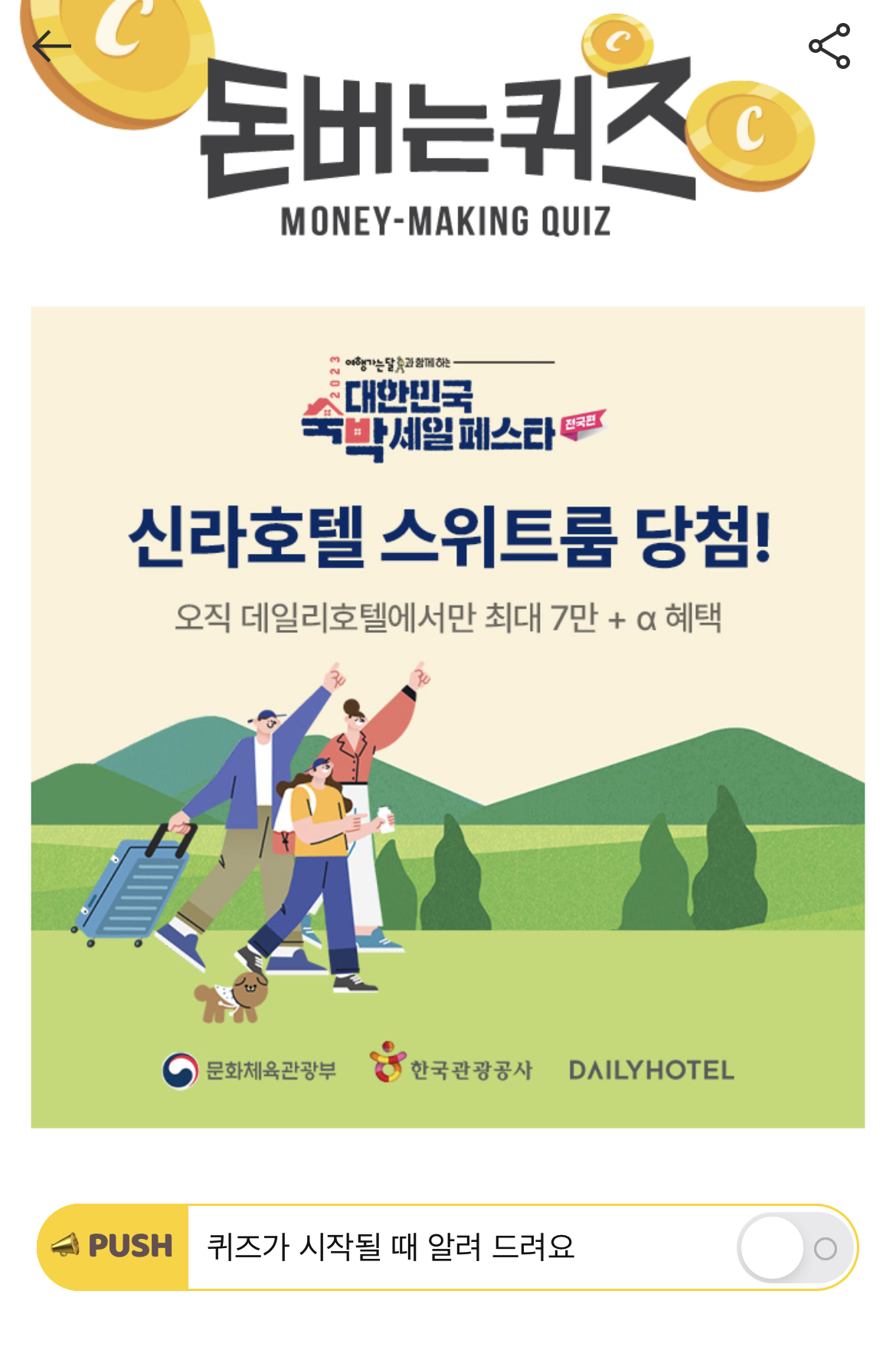 캐시워크 돈버는퀴즈 정답 데일리호텔 2023 숙박 세일 페스타 단독 혜택 알파벳