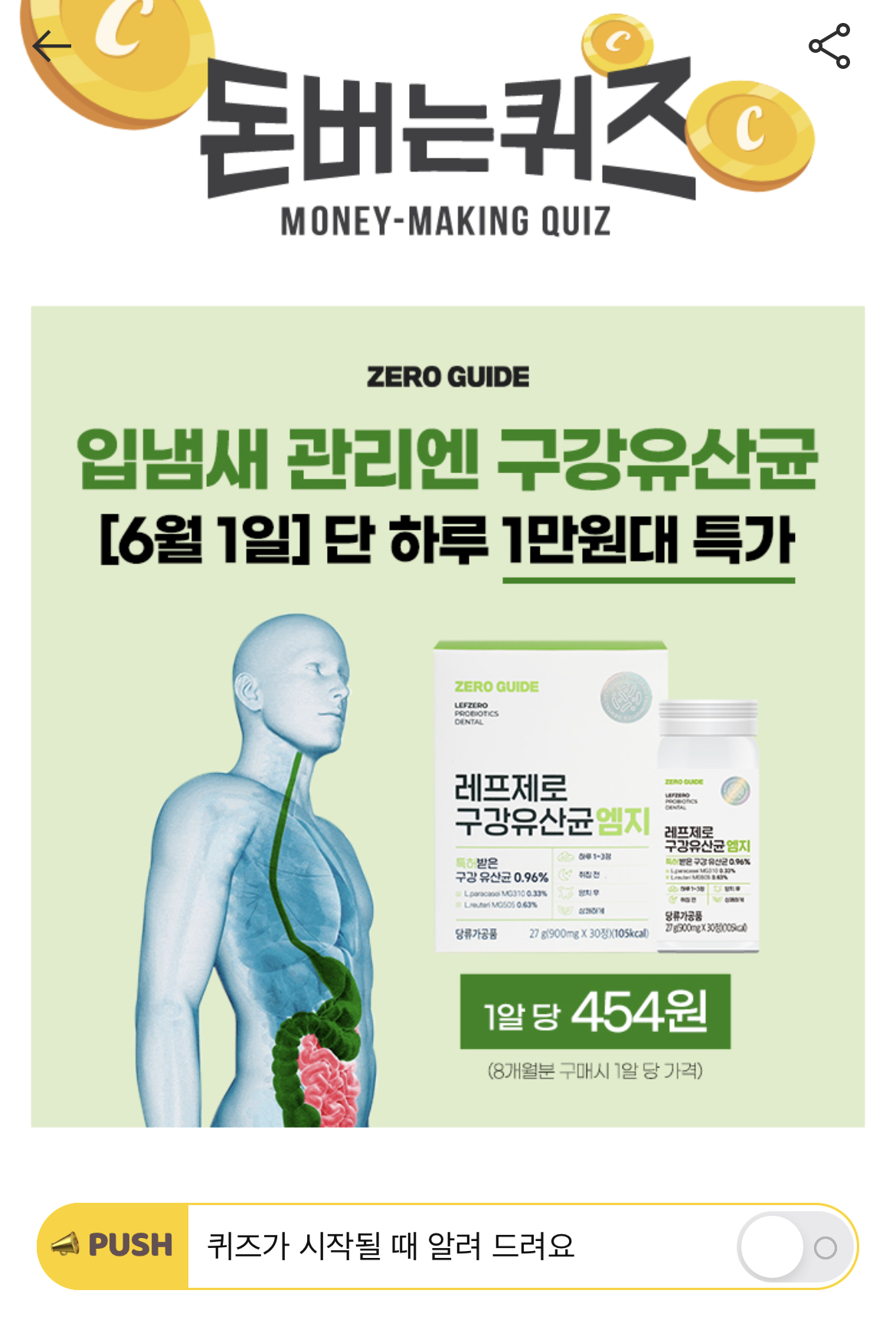 캐시워크 돈버는퀴즈 정답 레프제로 구강유산균