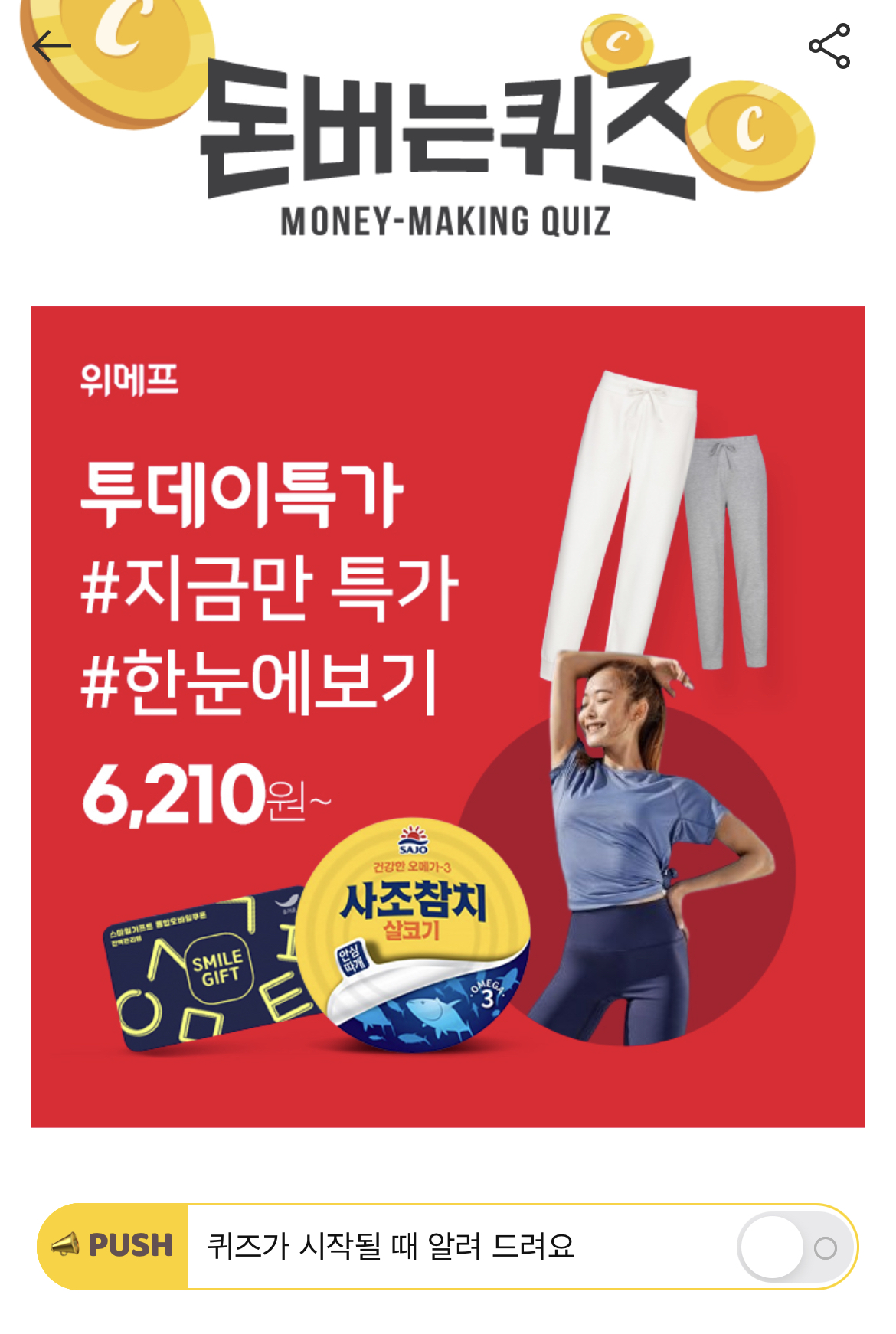 캐시워크 돈버는퀴즈 정답 위메프 투데이특가