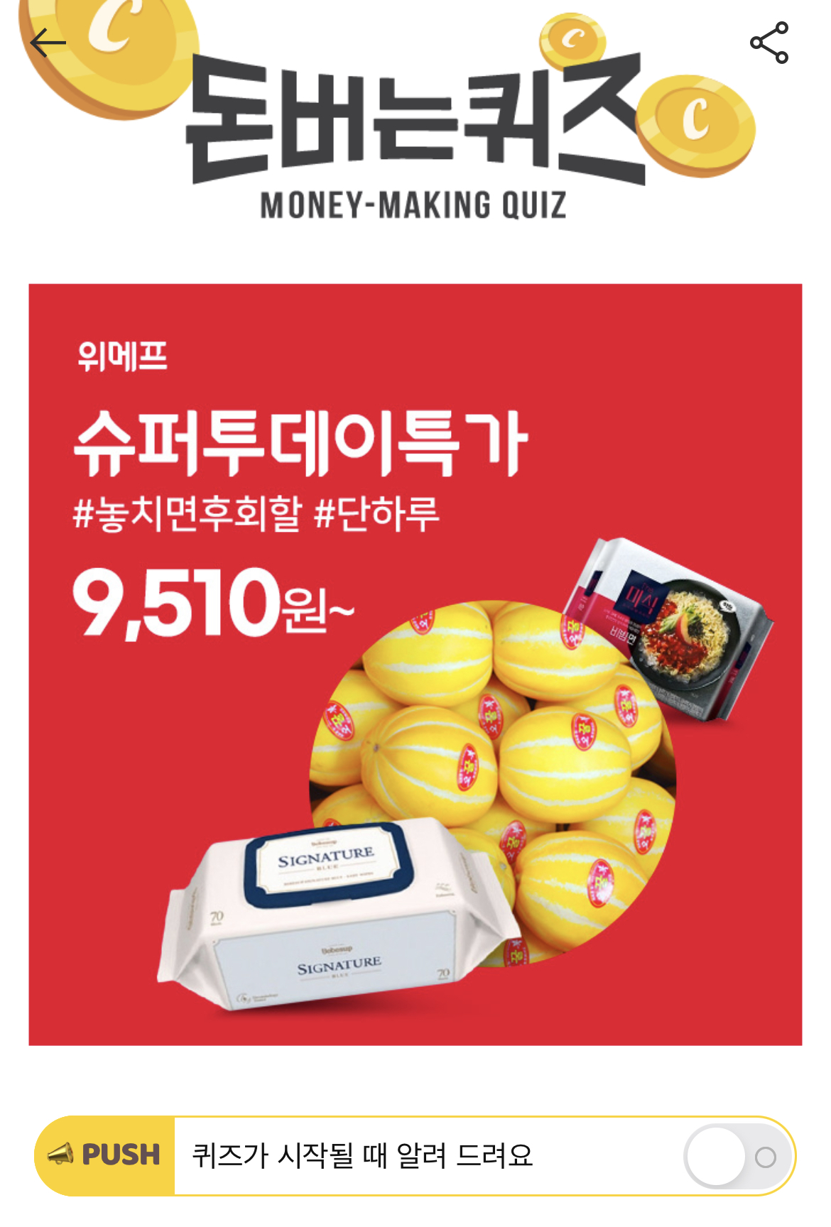 캐시워크 돈버는퀴즈 정답 위메프 투데이특가