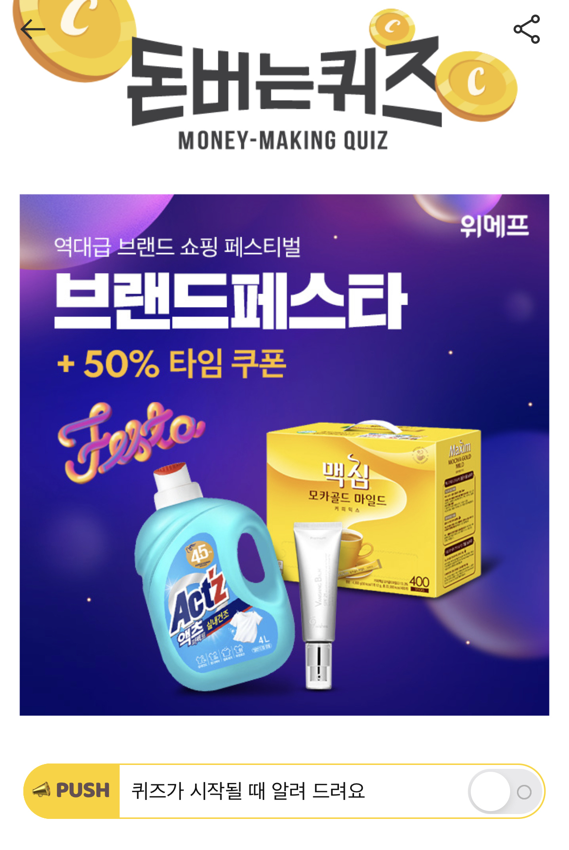 캐시워크 돈버는퀴즈 정답 위메프 브랜드 페스타 숫자