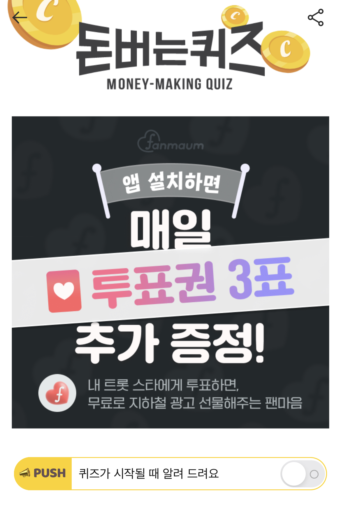 캐시워크 돈버는퀴즈 정답 팬마음 투표 이름
