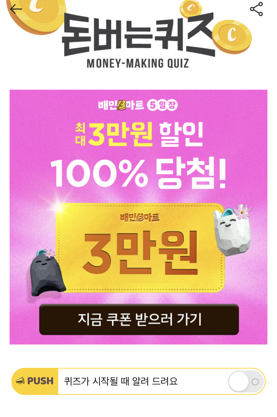 ※배달의민족 앱 설치 후 정답을 맞혀보세요.