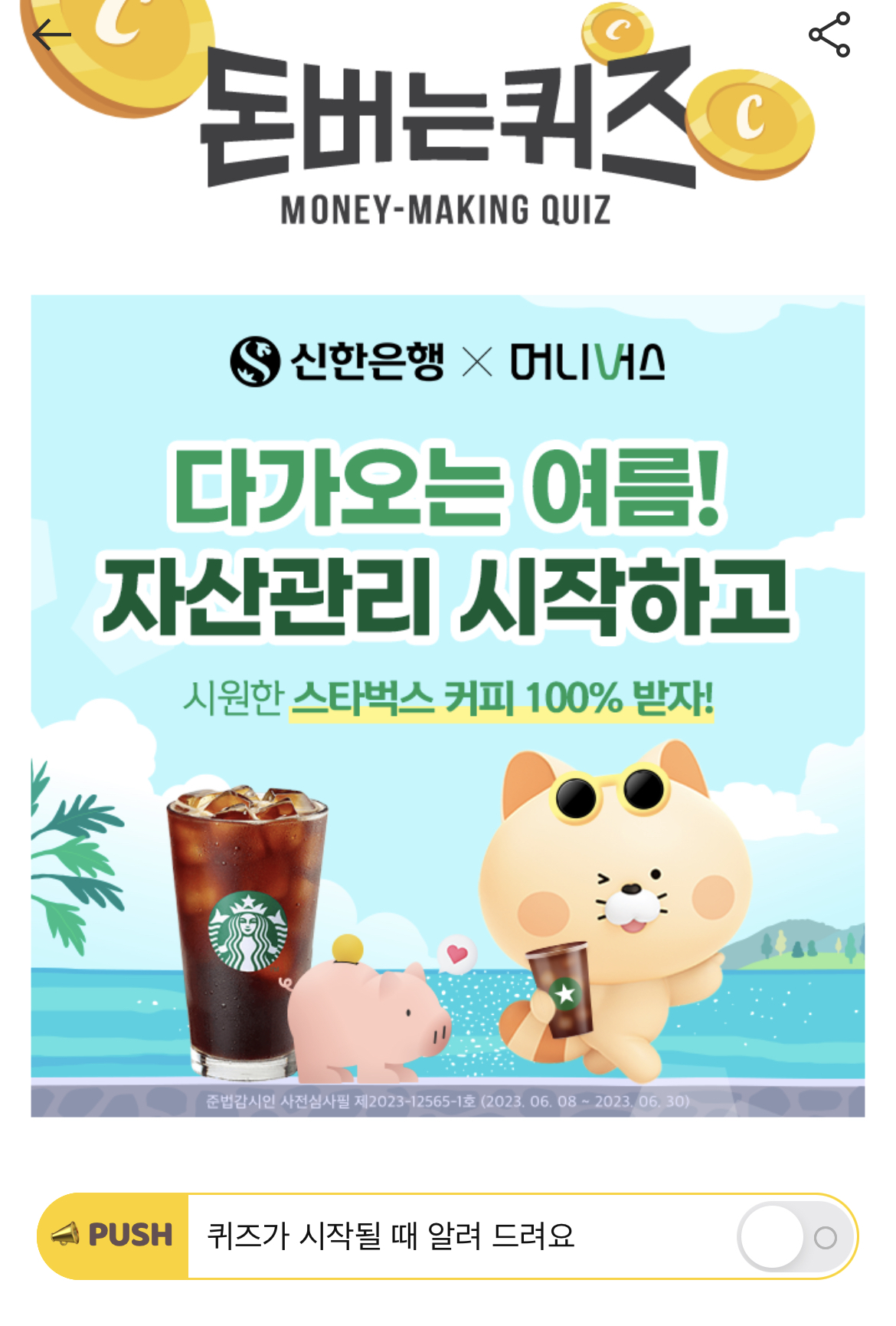 머니버스 최초 가입하고 자산 연결하면 스타벅스 아메리카노 100% 참여 즉시 드려요~