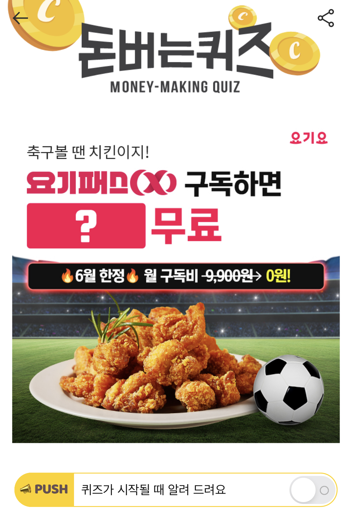 캐시워크 돈버는퀴즈 정답 요기요 요기패스