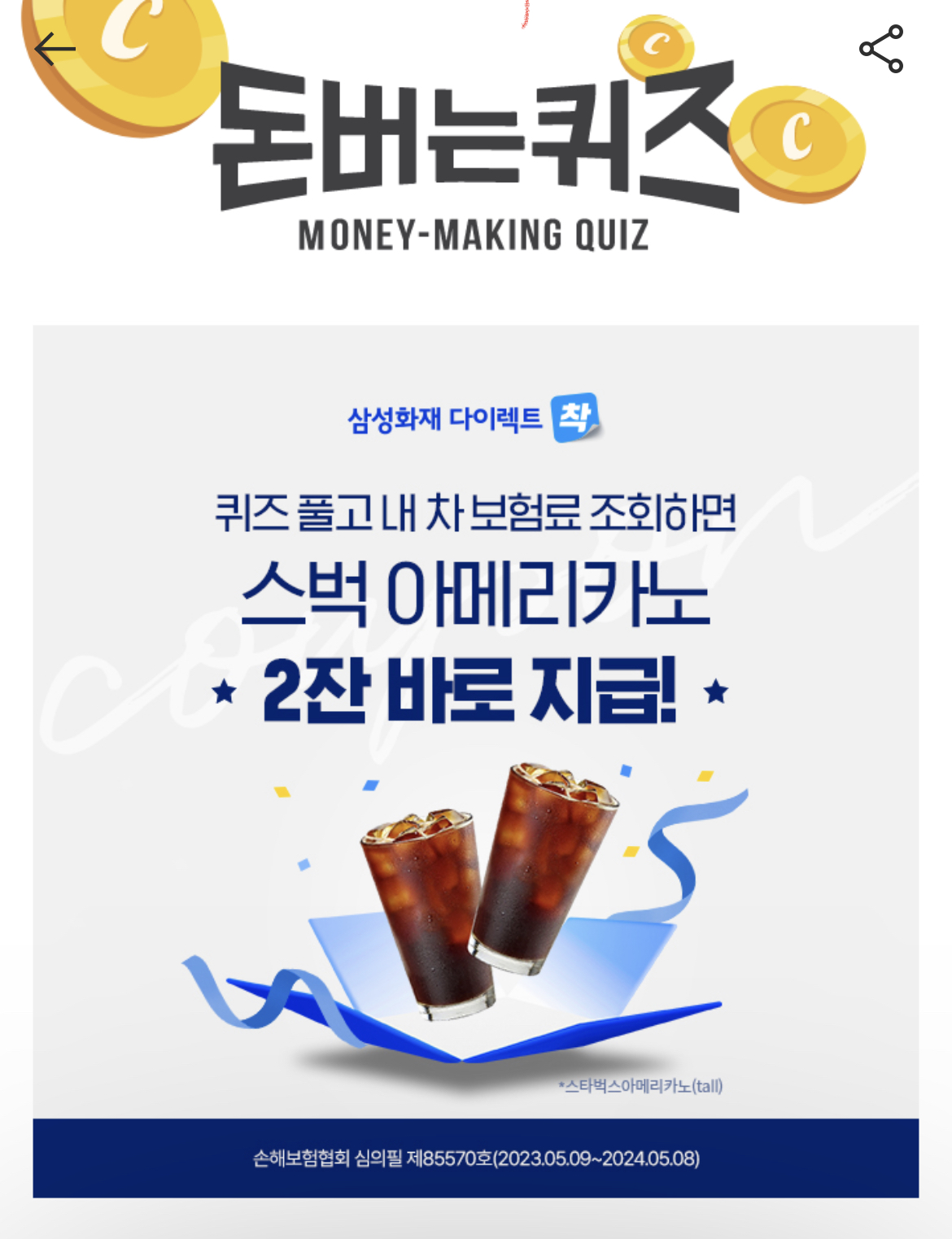 캐시워크 돈버는퀴즈 정답 삼성화재 자동차보험료