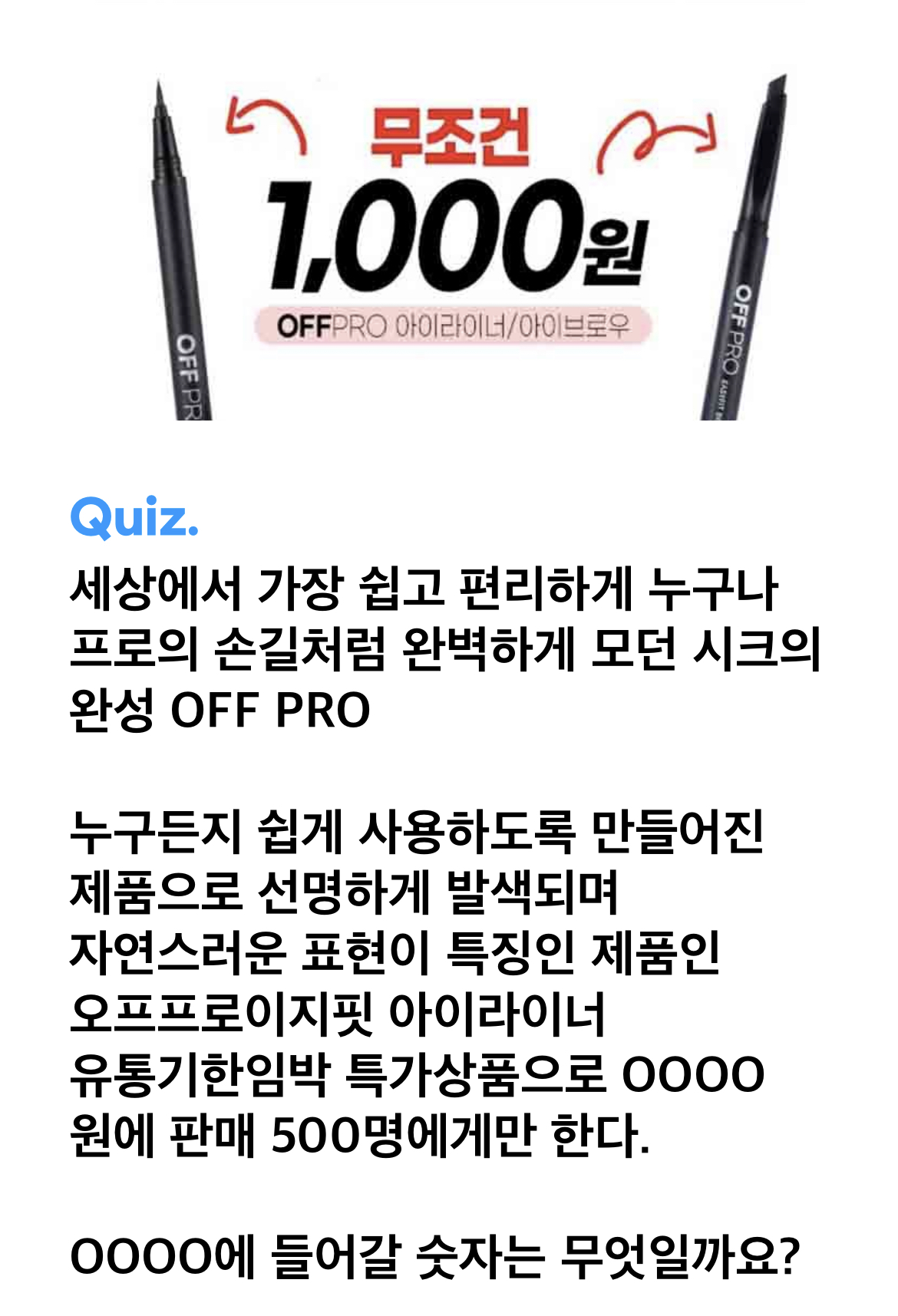 타임스프레드 용돈퀴즈 정답 오프프로 아이라이너 아이브로우