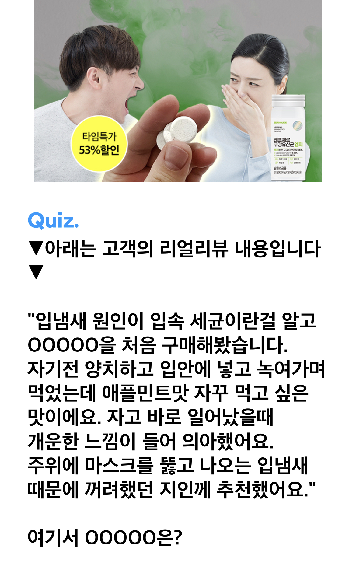 타임스프레드 용돈퀴즈 정답 레프제로 구강유산균