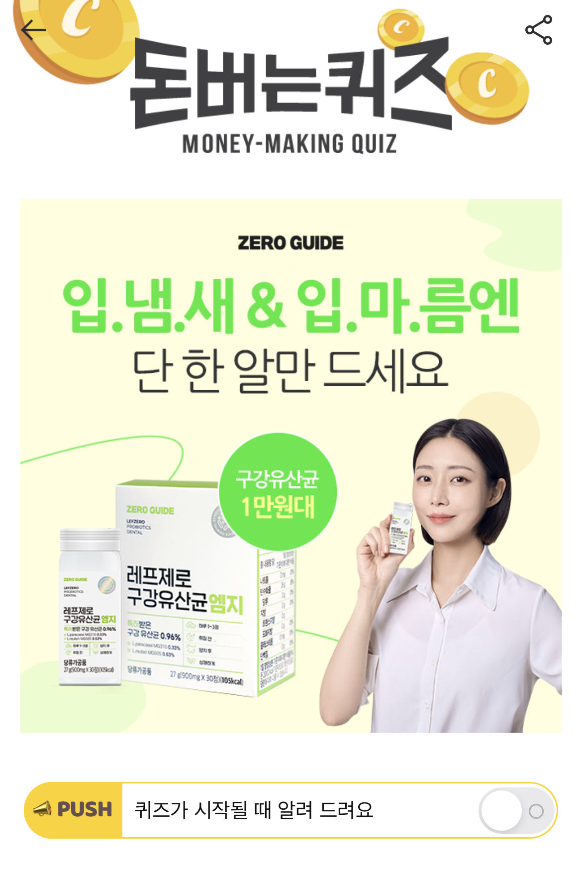 캐시워크 돈버는퀴즈 정답 레프제로 구강유산균