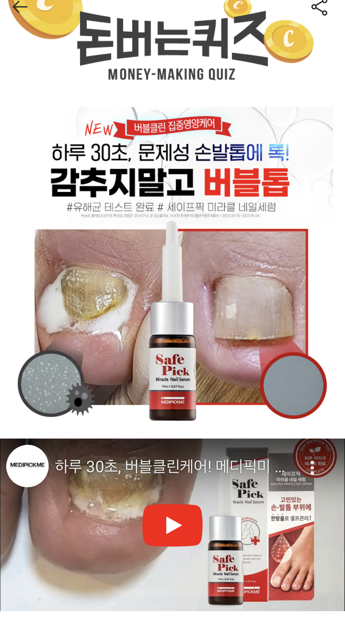 캐시워크 돈버는퀴즈 정답 메디픽미 세이프픽 미라클 네일세럼