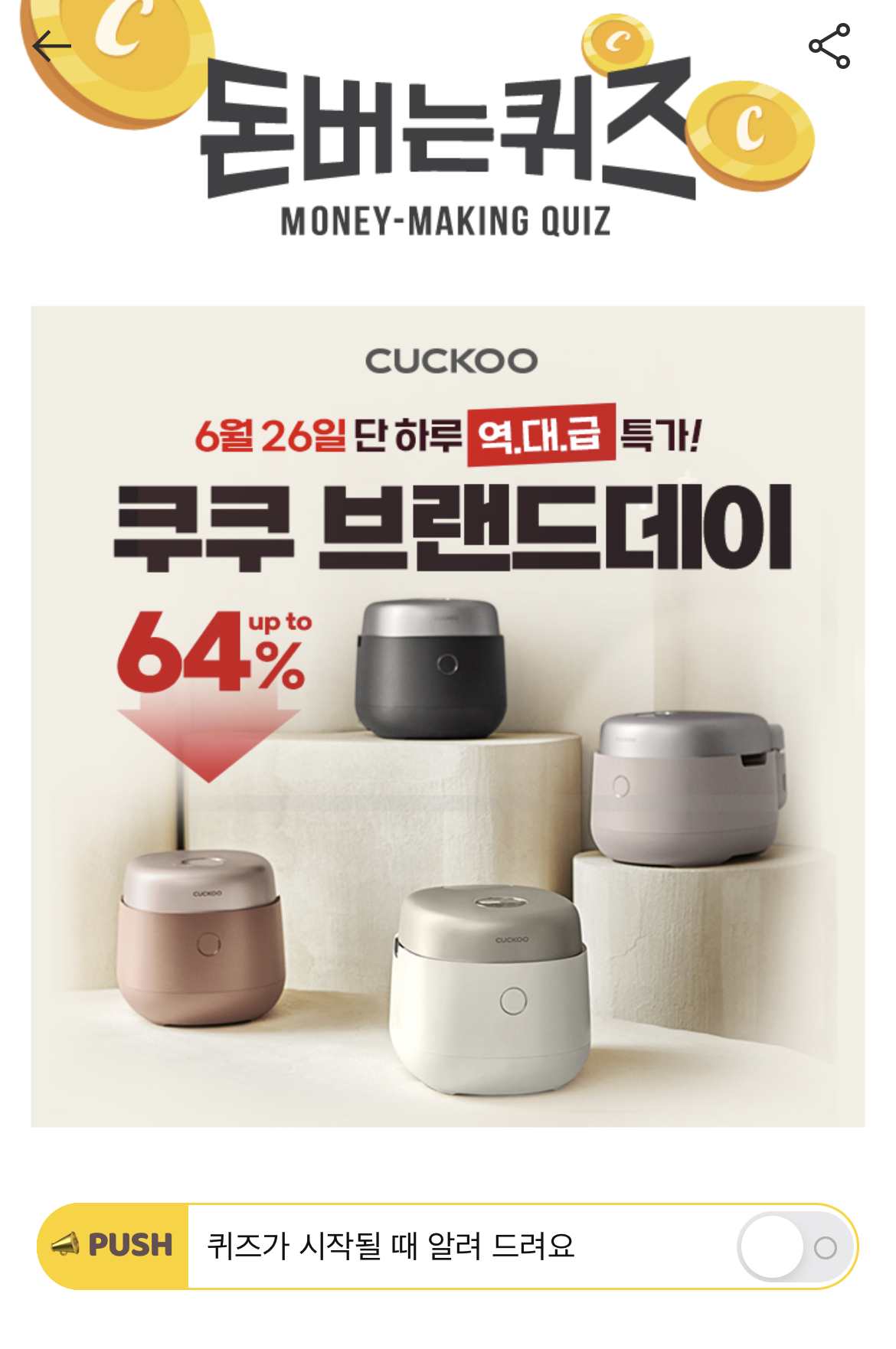 캐시워크 돈버는퀴즈 정답 쿠쿠 신상 헤어드라이어 한글5자+영어1자