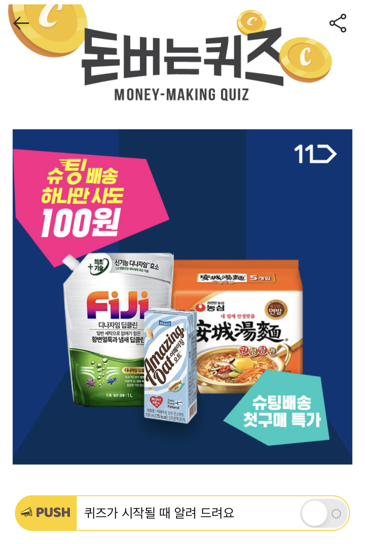캐시워크 돈버는퀴즈 정답 11번가 슈팅배송 숫자