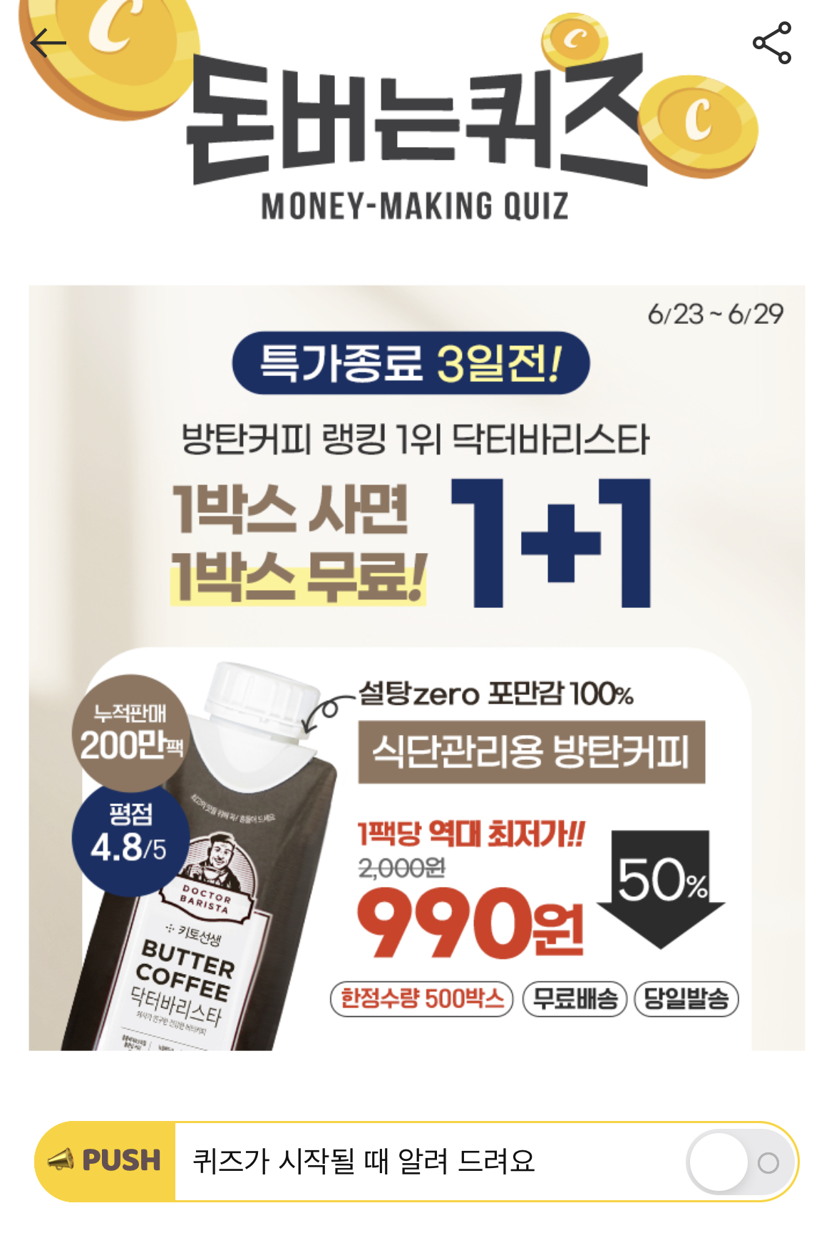 캐시워크 돈버는퀴즈 정답 닥터바리스타