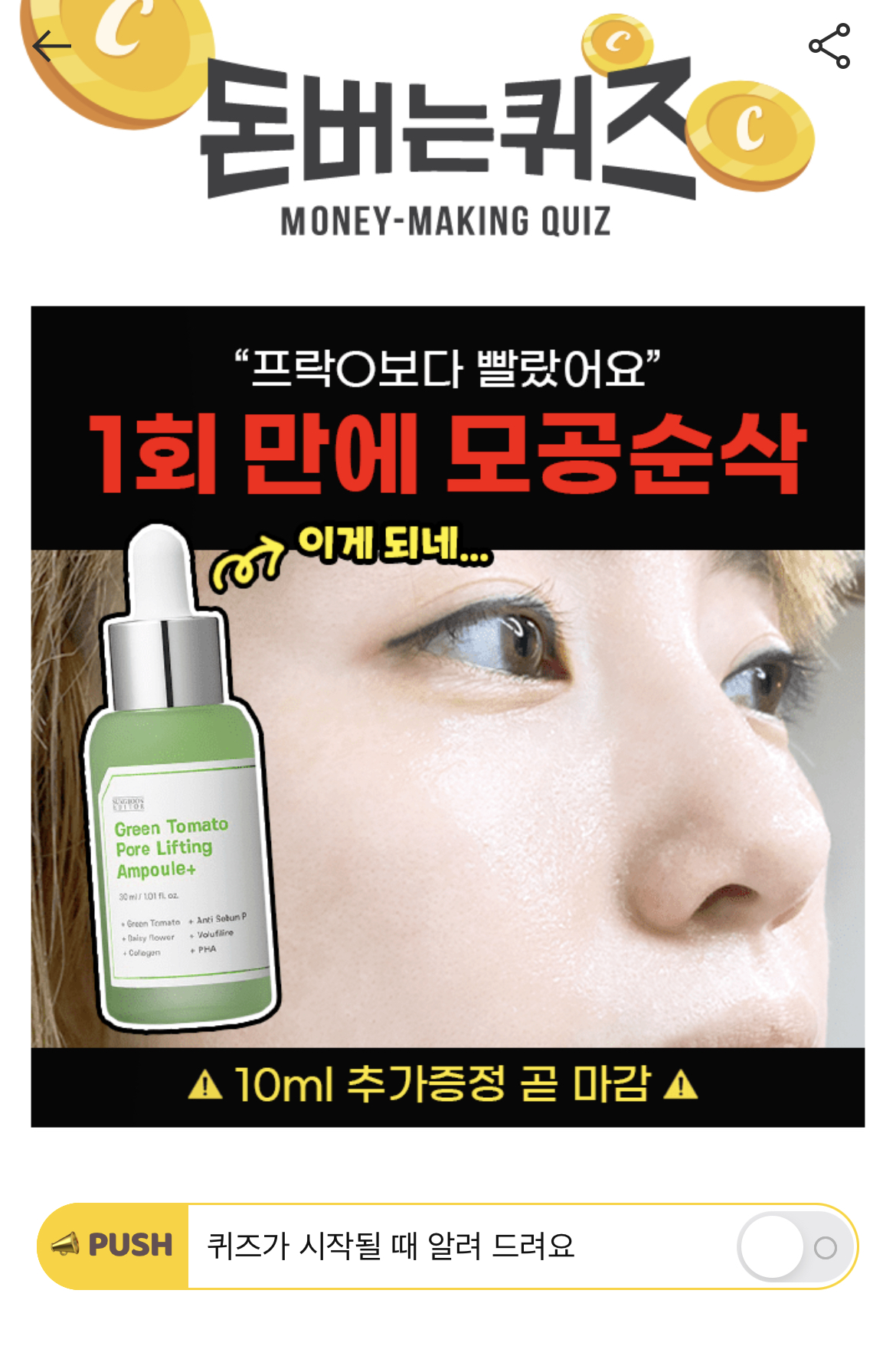 캐시워크 돈버는퀴즈 정답 성분에디터 그린 토마토 포어 리프팅 앰플