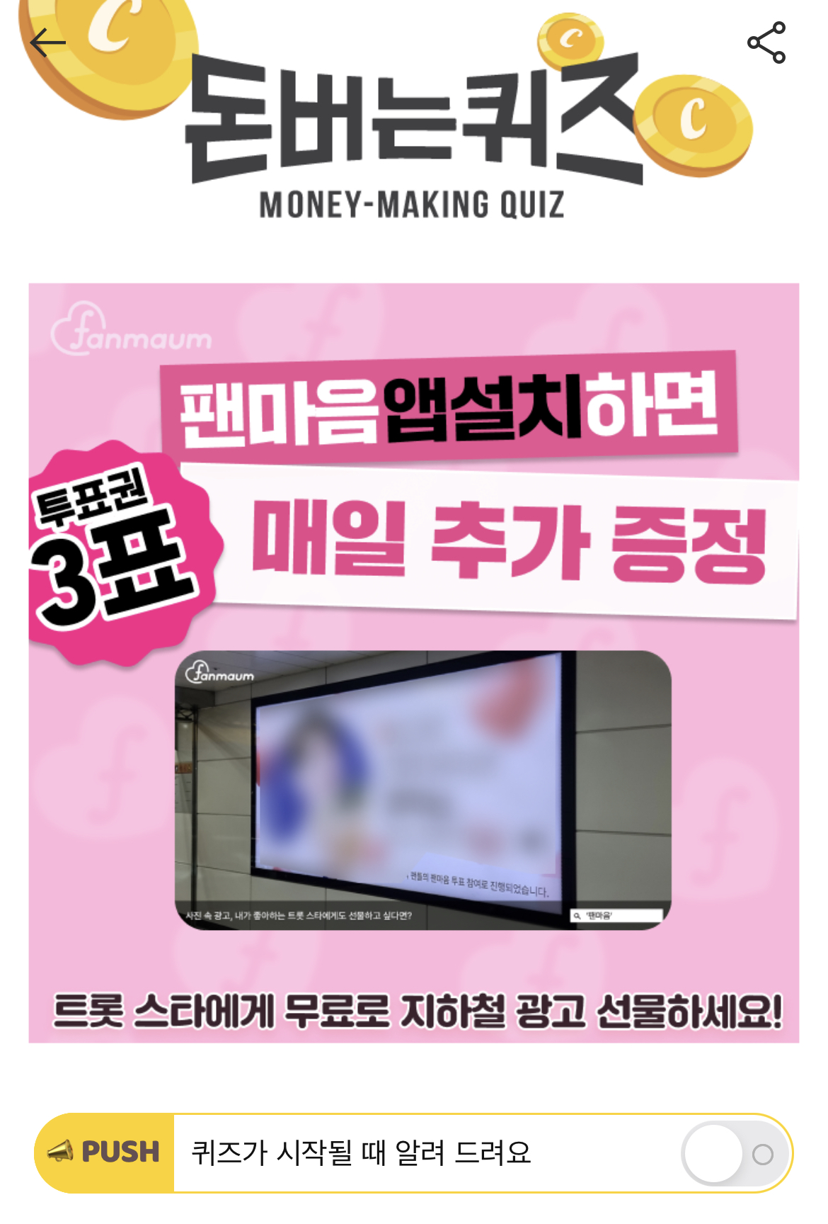 캐시워크 돈버는퀴즈 정답 팬마음 트롯스타