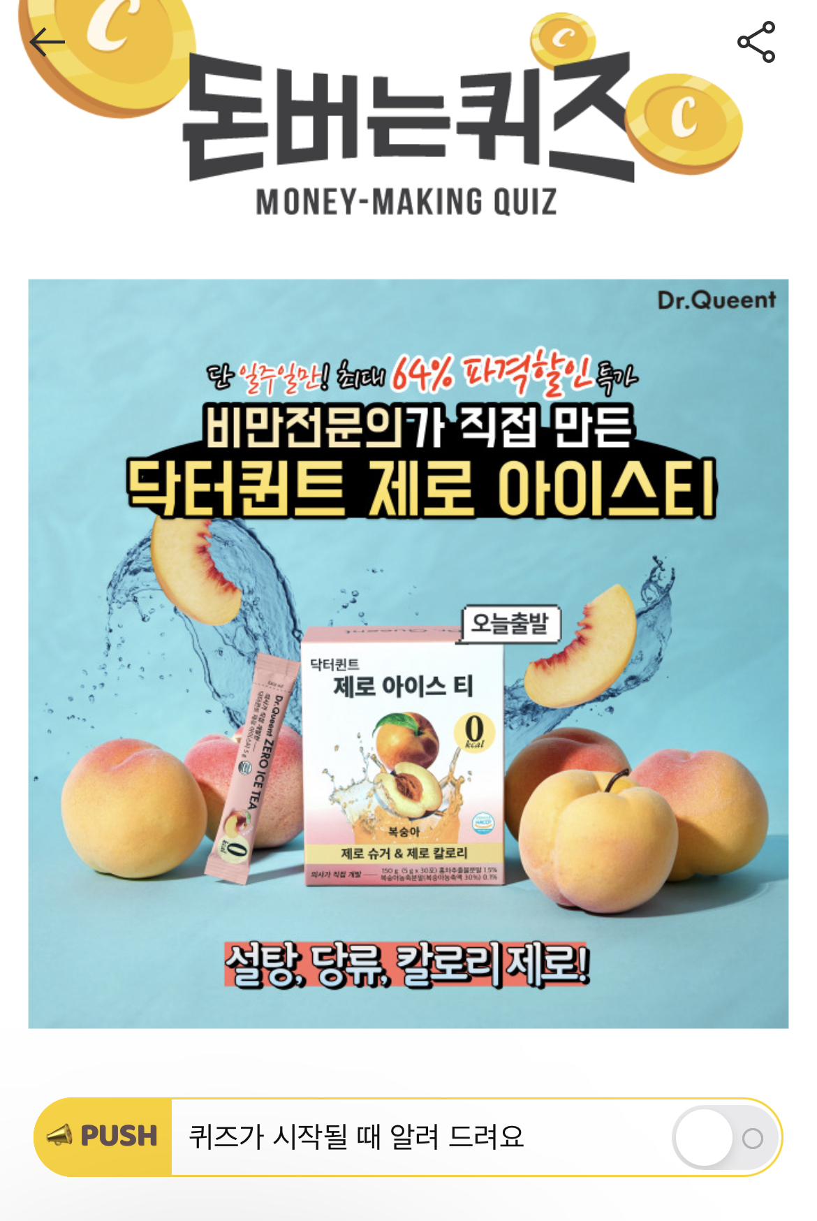 캐시워크 돈버는퀴즈 정답 닥터퀸트 제로 아이스티 ㅇㅅㅍㅌ