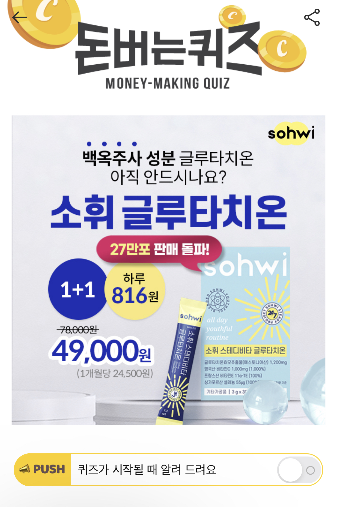 캐시워크 돈버는퀴즈 정답 소휘 글루타치온 분말 숫자