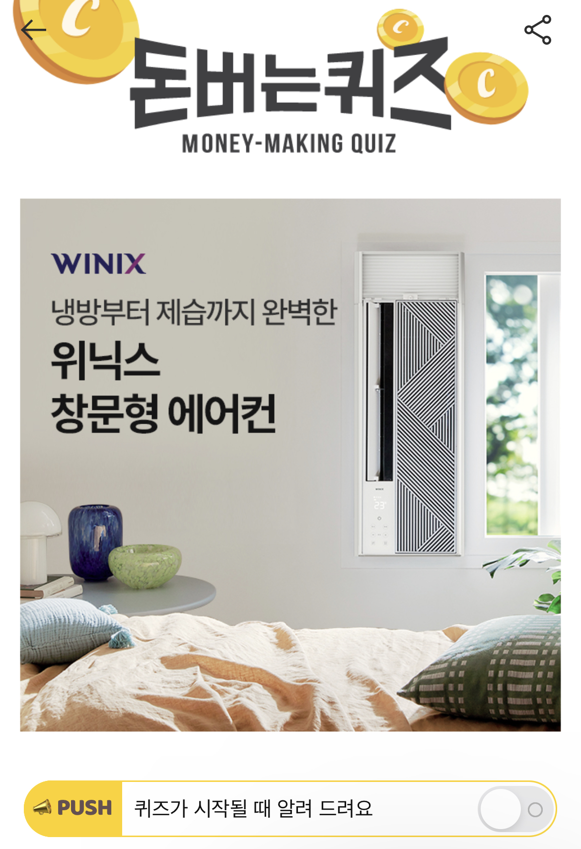 캐시워크 돈버는퀴즈 정답 위닉스 창문형에어컨