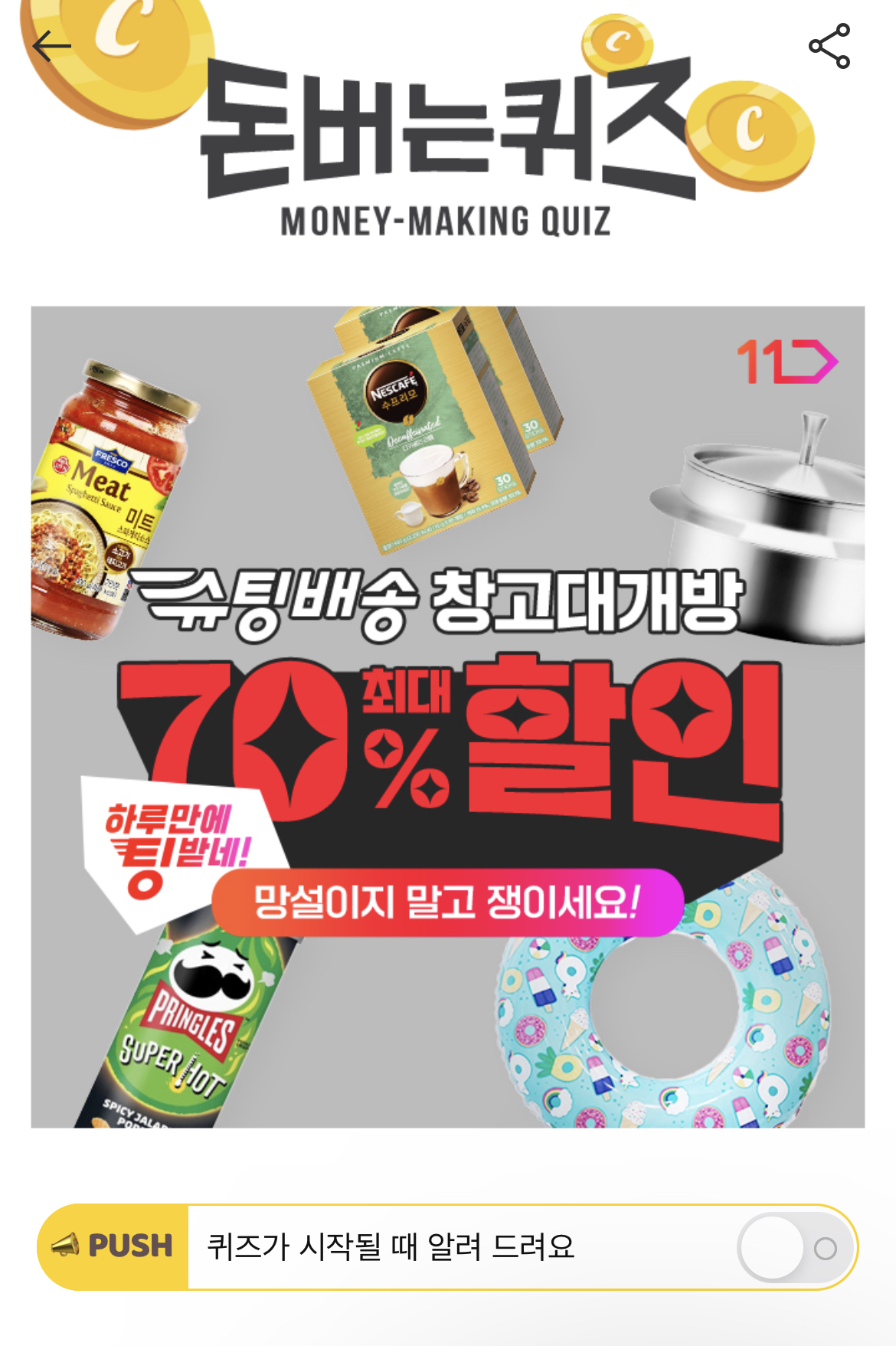 캐시워크 돈버는퀴즈 정답 11번가 슈팅배송 창고대개방