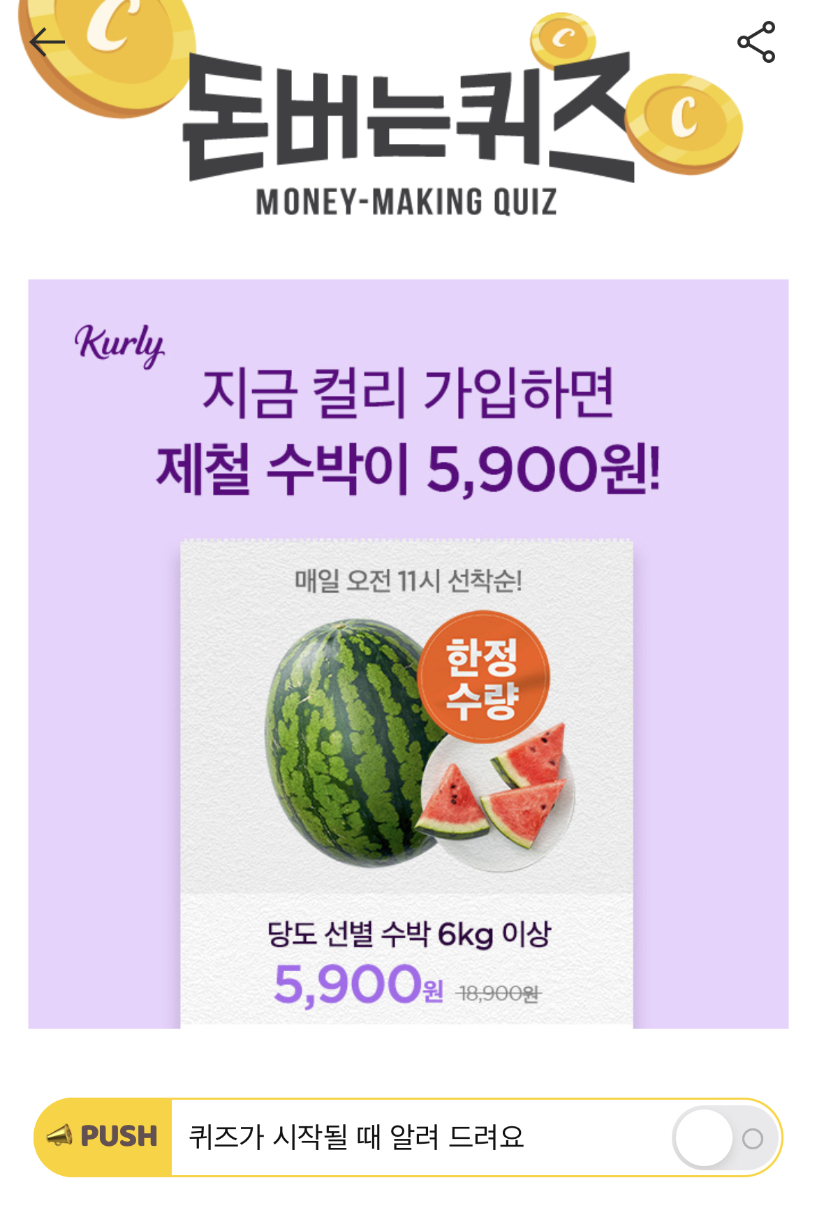 캐시워크 돈보는퀴즈 정답 컬리 제철 수박 특가 이벤트
